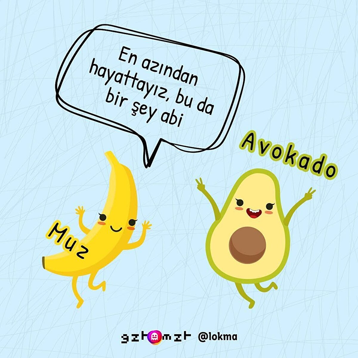 Saklarken asla aynı ortamda bulundurmamamız gereken sebze ve meyvelerin isyanını resmettik.😢 Bu gıdalar birlikte saklandığında etilen (C2H4) devreye girdiği için kısa sürede çürüme meydana gelir. Ancak olgunlaşmasını istediğiniz bir avokadonuz varsa yanına muz koymak elbette iyi bir çözüm olacaktır.🥑