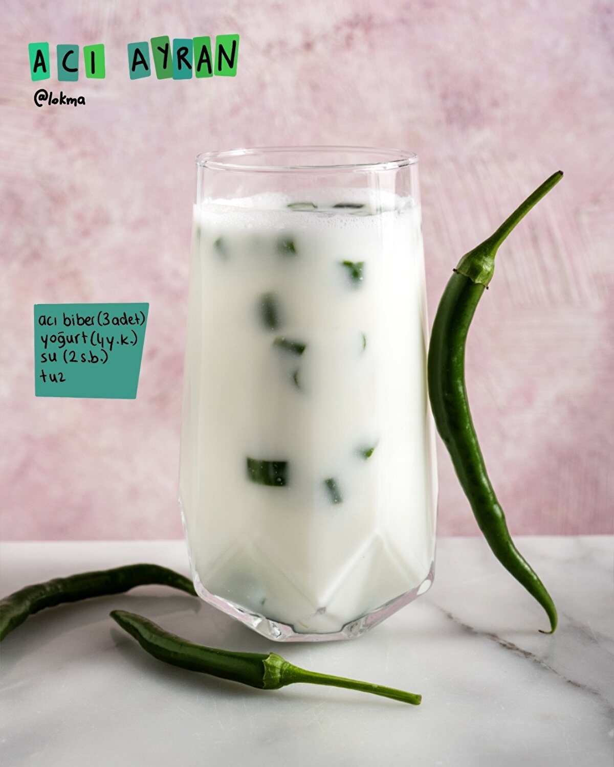 🌶️Acı ayran 3 adet acı biber 4 yemek kaşığı yoğurt 2 su bardağı su Tuz