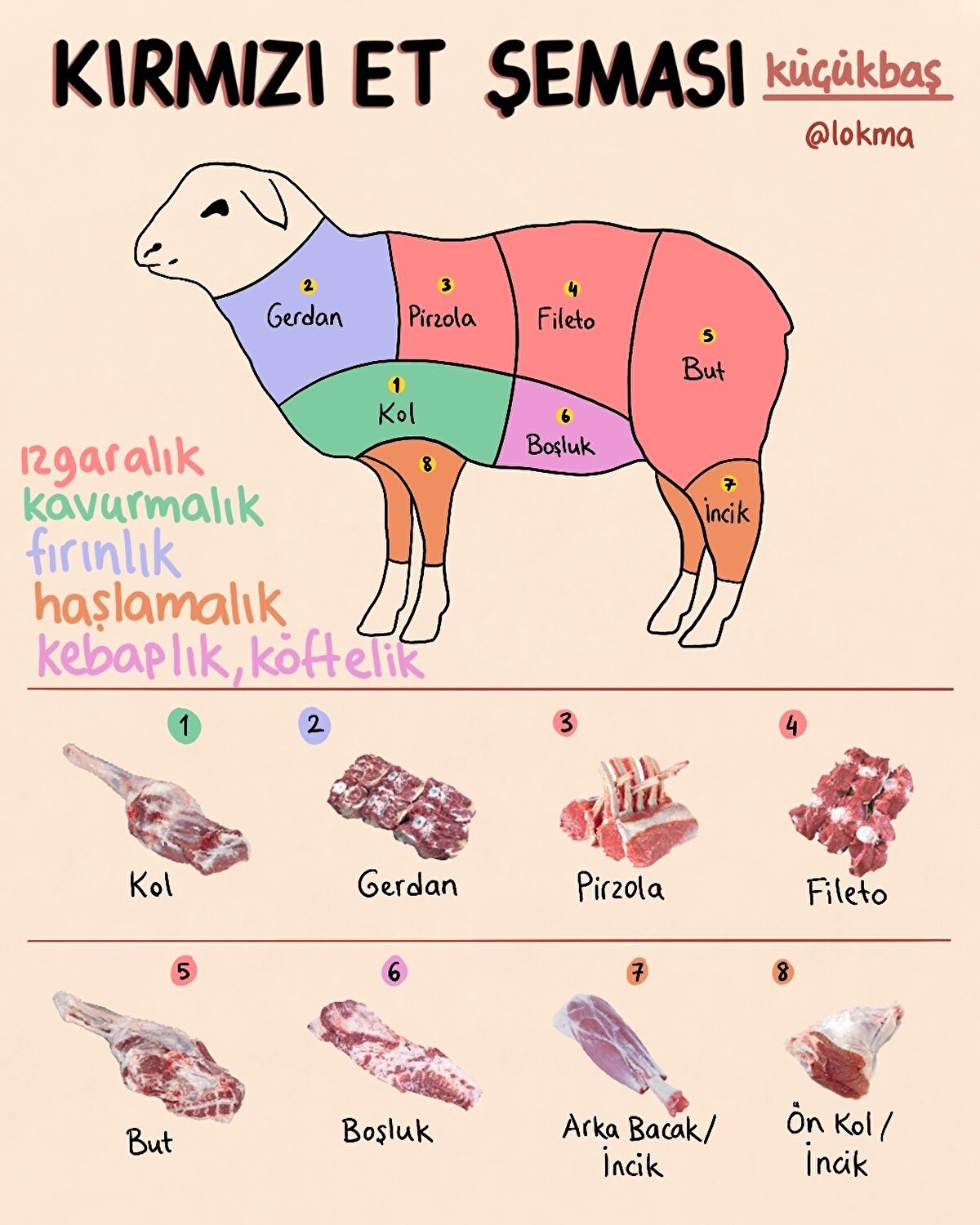 Kurban etinin neresinden ne yapacağını bir türlü bilemeyenler buraya! Lokmacığınız harika bir şema hazırladı!