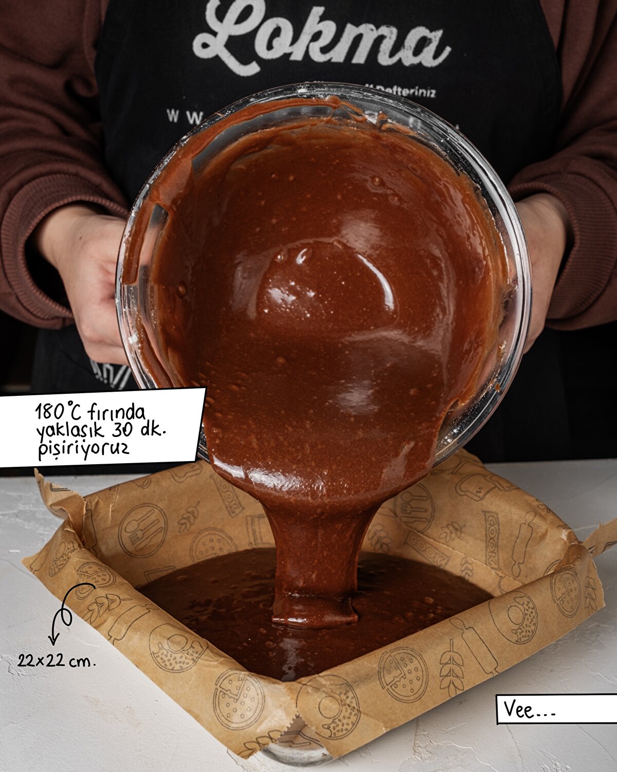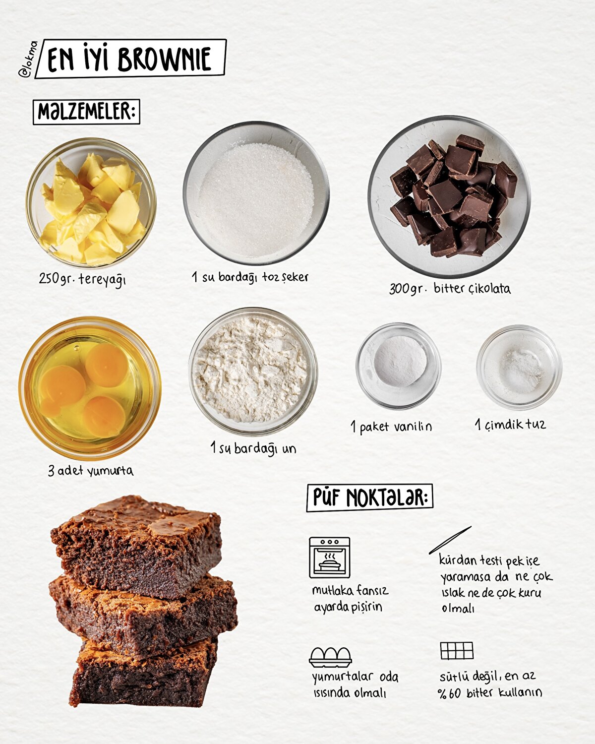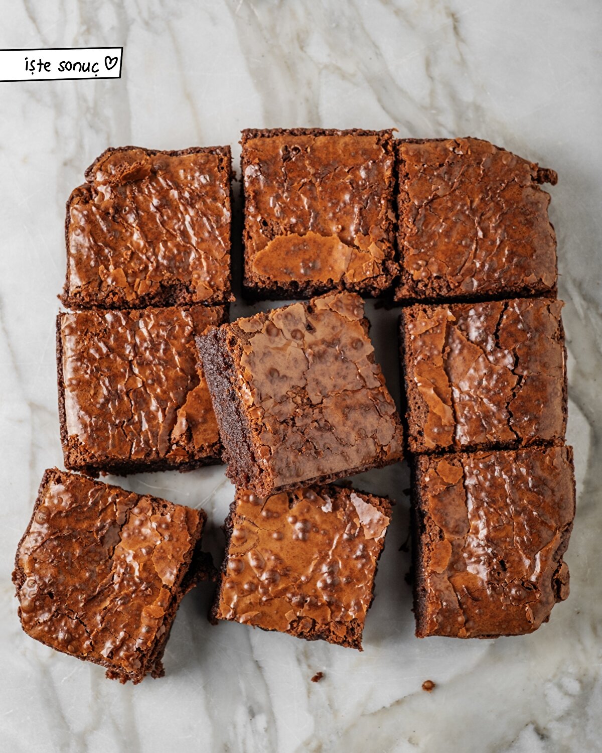 📍Yumurtalar oda sıcaklığında olmalı. 📍Kürdan testinde brownie çok ıslaksa 5 dakika daha pişirin.