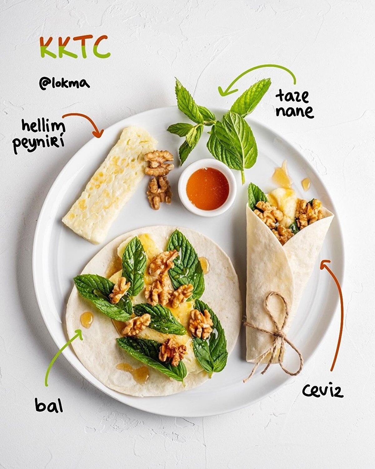 KKTC Malzemeler 4-5 dilim hellim peyniri 1 yemek kaşığı bal 1 avuç ceviz Nane yaprağı