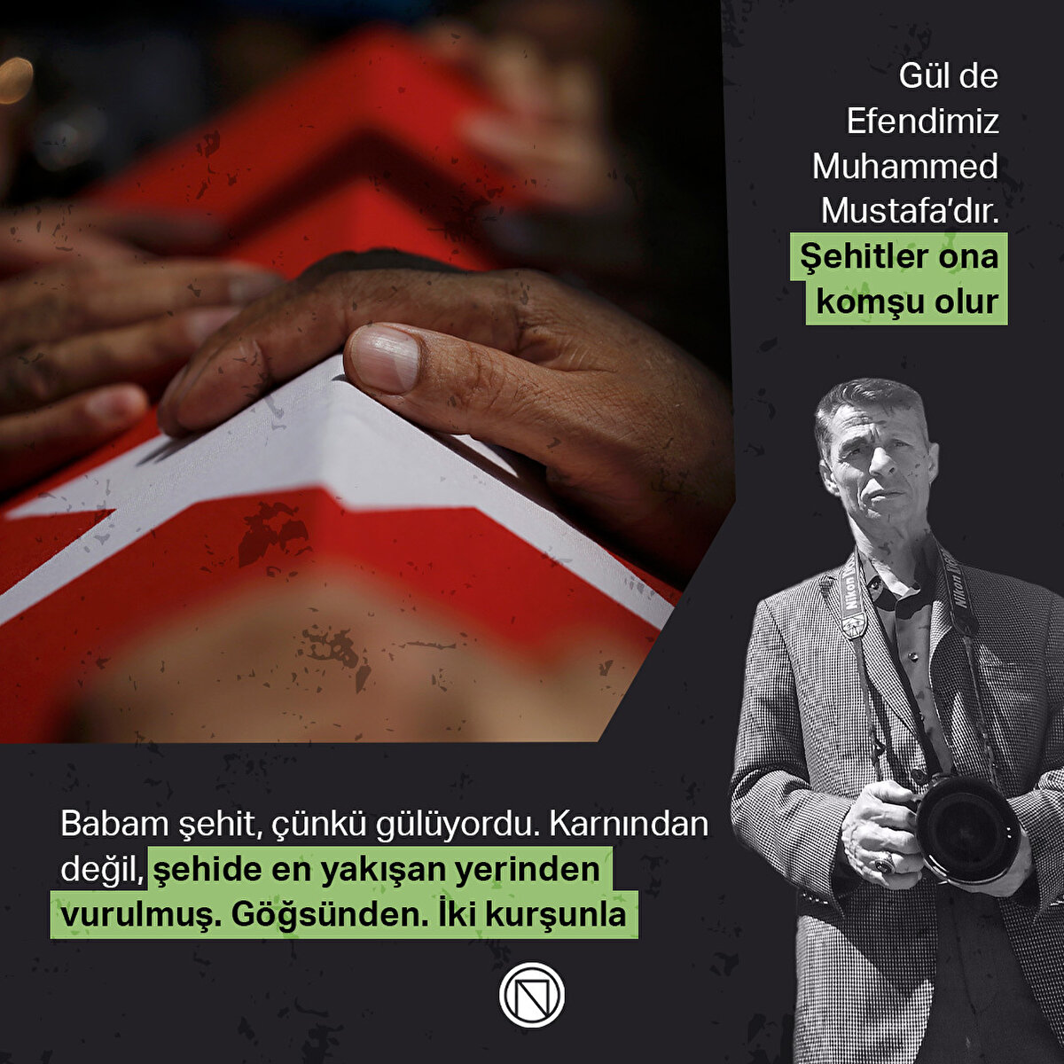 Babam şehit, çünkü gülüyordu. Karnından değil, şehide en yakışan yerinden vurulmuş. Göğsünden. İki kurşunla