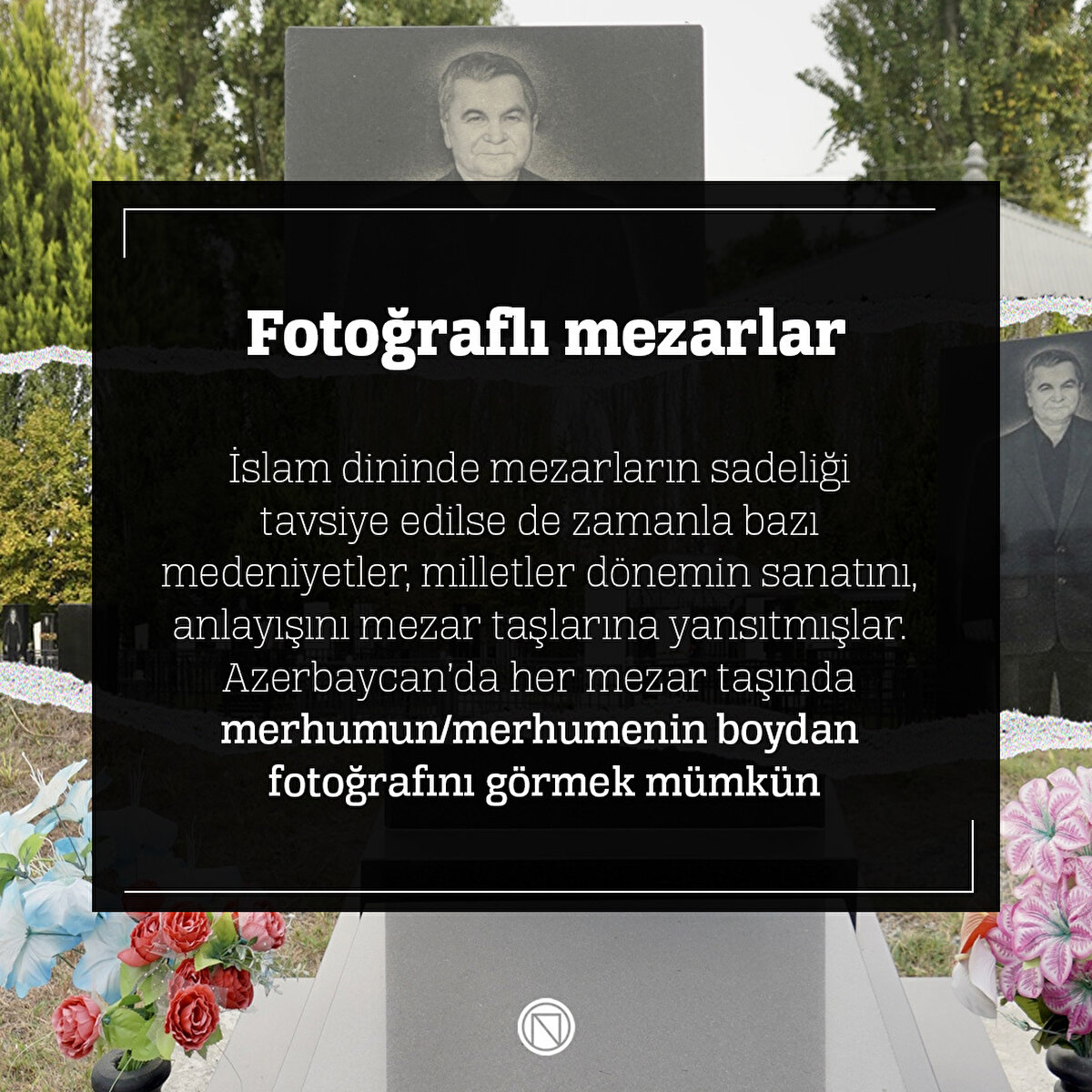 İslam dininde mezarların sadeliği tavsiye edilse de zamanla bazı medeniyetler, milletler dönemin sanatını, anlayışını mezar taşlarına yansıtmışlar. Azerbaycan'da her mezar taşında merhumun/merhumenin boydan fotoğrafını görmek mümkün