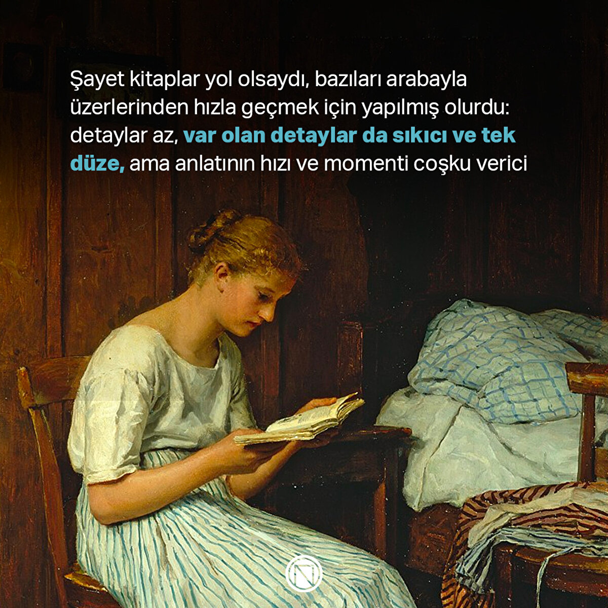 Şayet kitaplar yol olsaydı, bazıları arabayla üzerlerinden hızla geçmek için yapılmış olurdu: detaylar az, var olan detaylar da sıkıcı ve tek düze, ama anlatının hızı ve momenti coşku verici