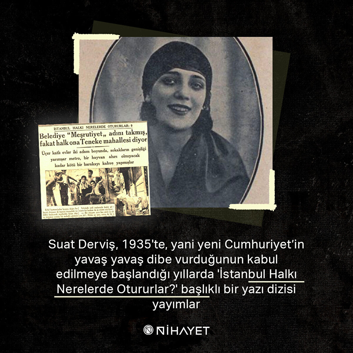 Suat Derviş, 1935'de, yani yeni Cumhuriyet'in yavaş yavaş dibe vurduğunun kabul edilmeye başlandığı yıllarda 'İstanbul Halkı Nerelerde Otururlar?' başlıklı bir yazı dizisi yayımlar