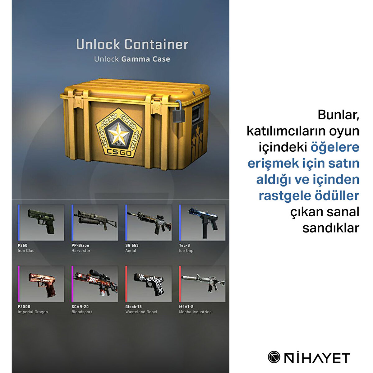 Ganimet kutuları (loot box) son yıllarda oyunlarda oldukça popülerlik kazandı. Bunlar, katılımcıların oyun içindeki öğelere erişmek için satın aldığı ve içinden rastgele ödüller çıkan sanal sandıklar