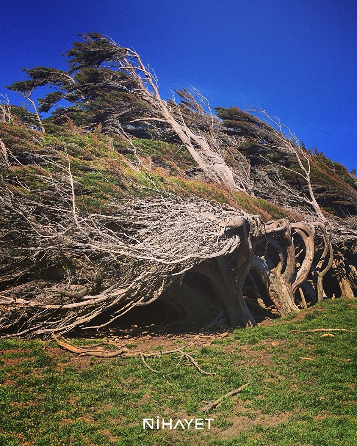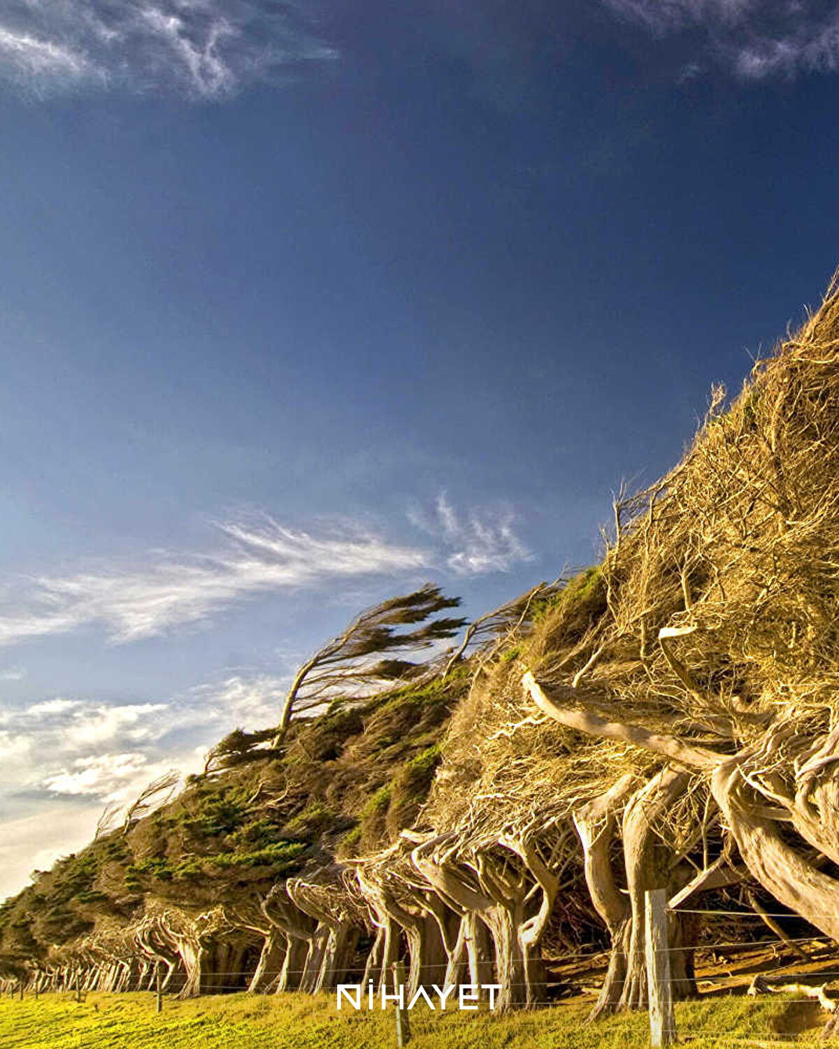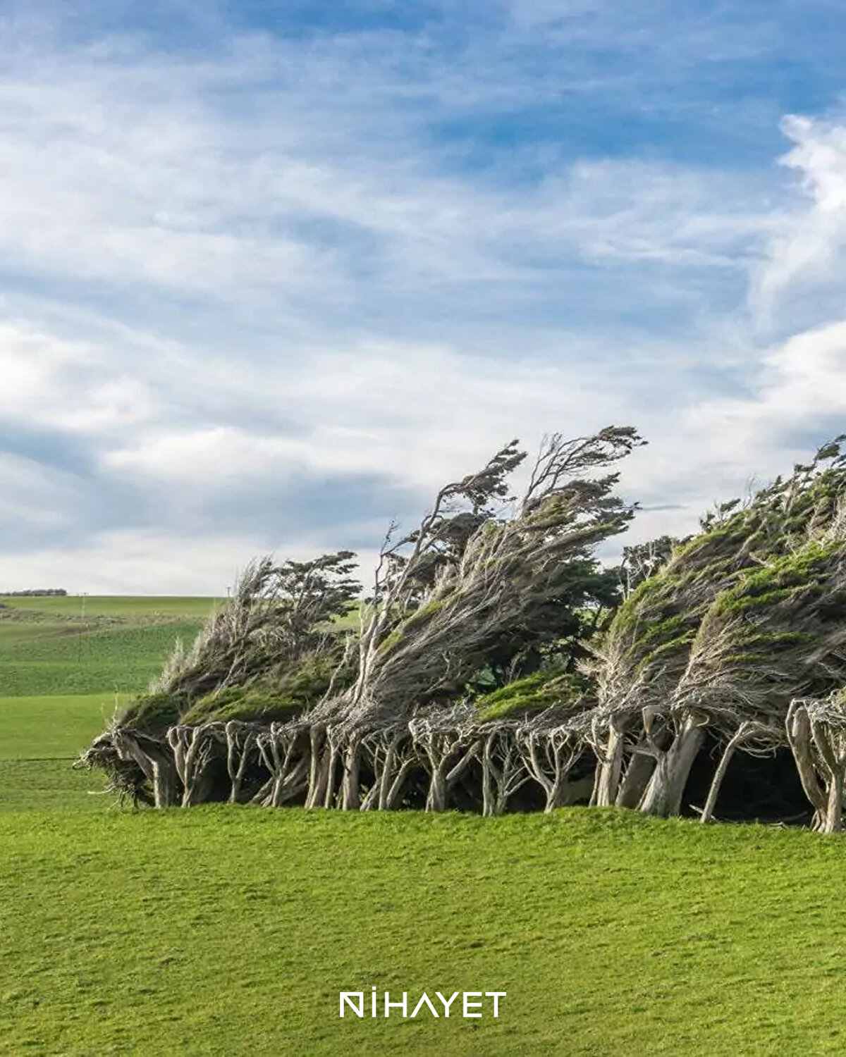 Slope Point bölgesi, yıl boyunca sert rüzgâr alan bir yer olmasıyla biliniyor. Meşhur olduğu bir başka konu ise, dünyanın rüzgâr tarafından şekillendirilen tek ağaç topluluğuna sahip olması.