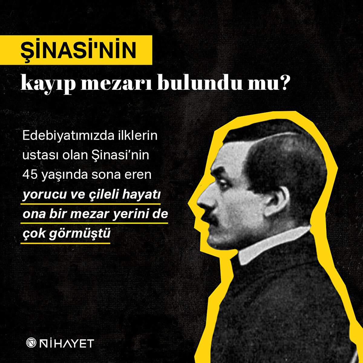 Edebiyatımızda ilklerin ustası olan Şinasi'nin 45 yaşında sona eren yorucu ve çileli hayatı ona bir mezar yerini de çok görmüştü