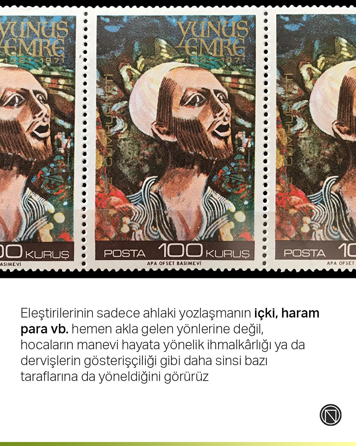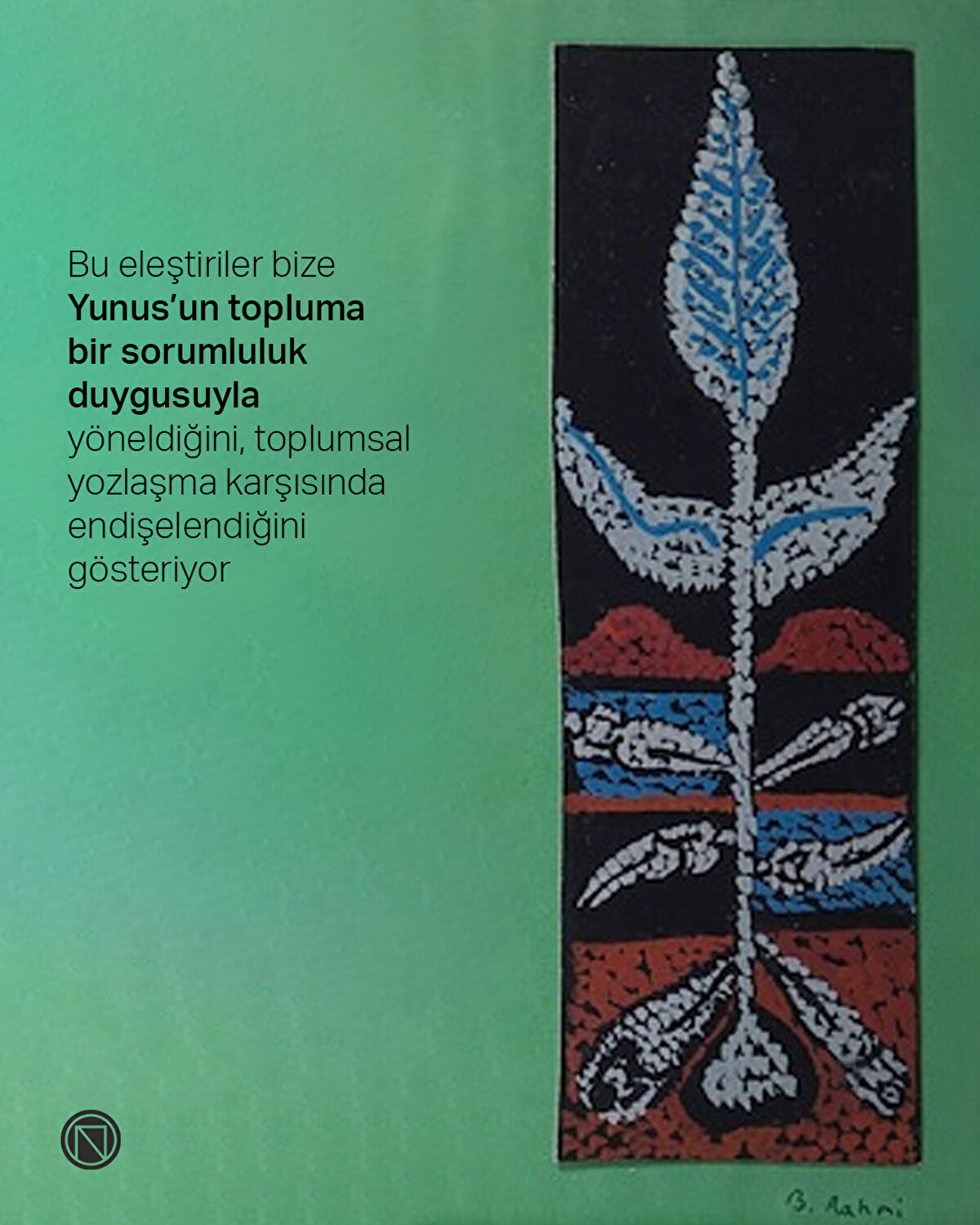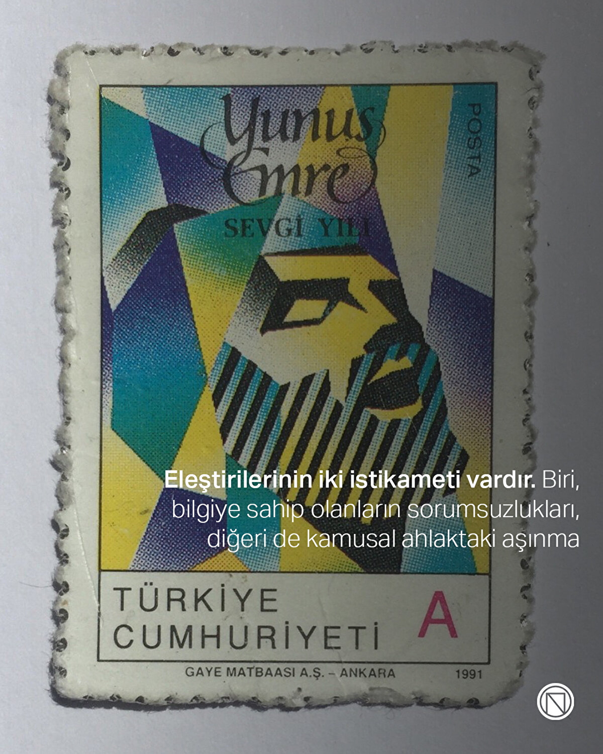 Yunus Emre'nin eleştirileri ortalama Müslüman'ı olduğu kadar, âlimi, dervişi de kapsar. Eleştirilerinin iki istikameti vardır. Biri, bilgiye sahip olanların sorumsuzlukları, diğeri de kamusal ahlaktaki aşınma