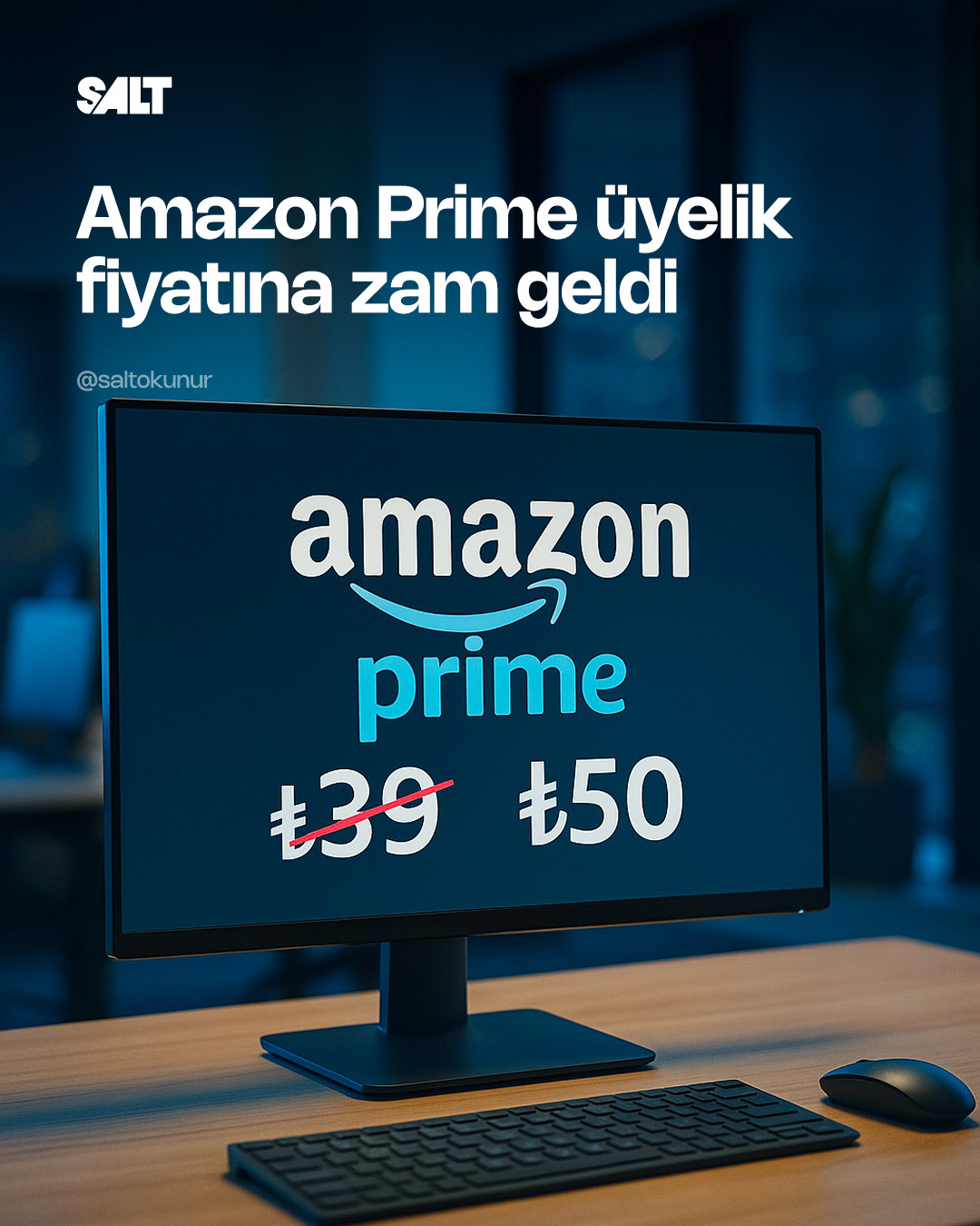 Amazon Prime'a zam geldi, aylık üyelik ücreti 39 TL'den 50 TL'ye yükseldi.