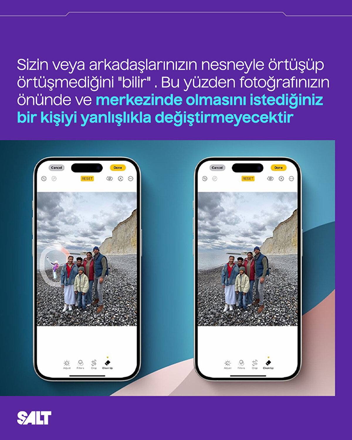 iOS 18 ile iPhone'a gelecek olan Apple Intelligence'ın özellikleri fotoğrafları yeniden düzenlemenize imkan sağlayacak. Fotoğraflarınıza istemediğiniz bir nesne ya da kişi girdiyse ondan kurtulmanız artık çok kolay olacak.