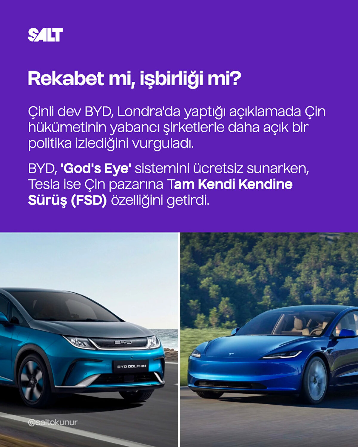 Otonom sürüşte rekabet hız kesmiyor! BYD, 'God's Eye' otonom sürüş sistemini ücretsiz sunarken, Tesla Çin pazarında Full Self-Driving (FSD) özelliğiyle sürücülerden olumlu geri dönüşler alıyor.