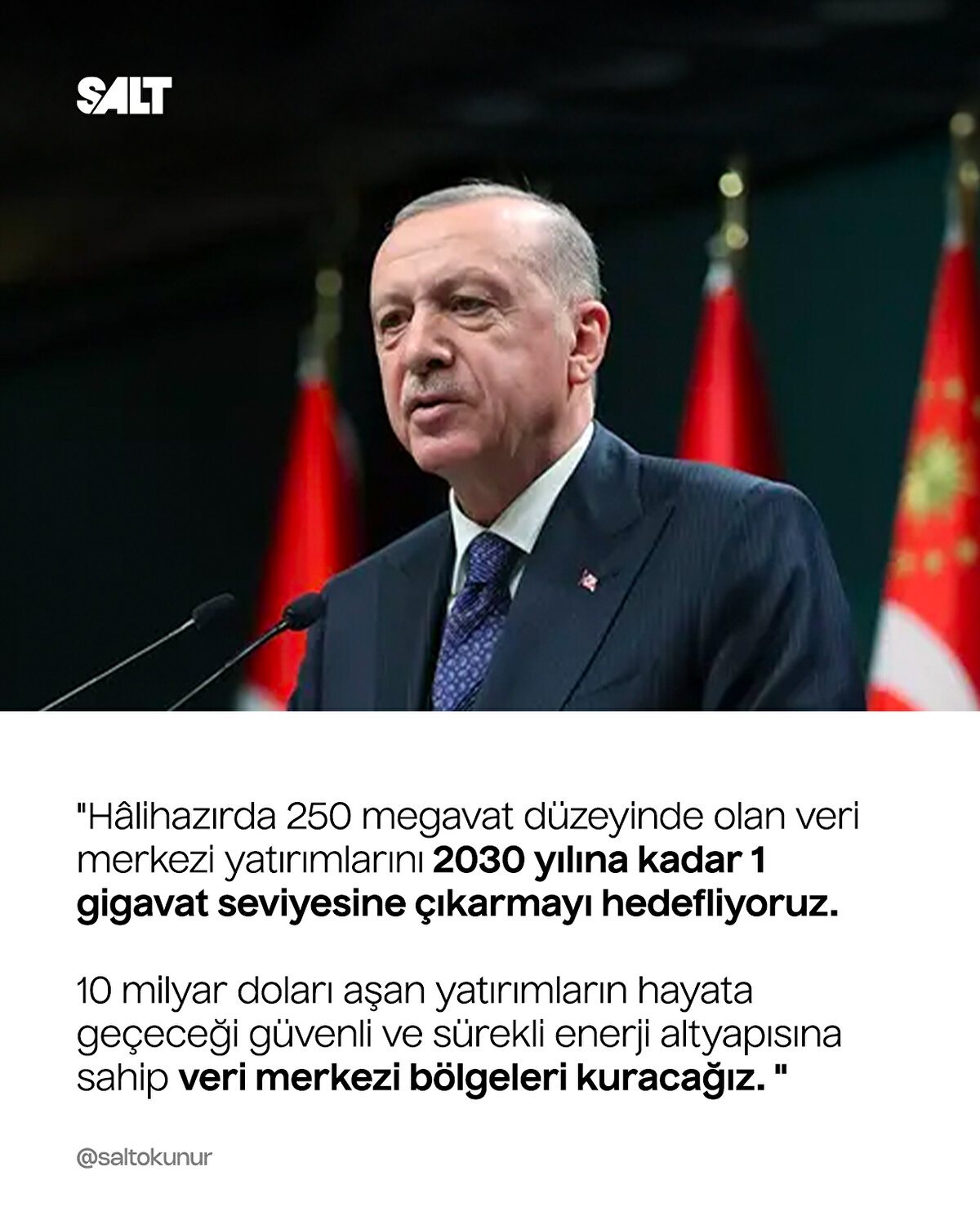 🟥Yapılan açıklamanın tamamı şu şekilde : " Kabine Toplantımızda yapay zekâ alanında yürüttüğümüz çalışmaları değerlendirdik. Hâlihazırda 250 megavat düzeyinde olan veri merkezi yatırımlarını 2030 yılına kadar 1 gigavat seviyesine çıkarmayı hedefliyoruz. 10 milyar doları aşan yatırımların hayata geçeceği güvenli ve sürekli enerji altyapısına sahip veri merkezi bölgeleri kuracağız. Yapay zekâ alanında uzmanlık eğitimlerini yaygınlaştıracağız. Yapay Zekâ Fonu'yla bu alandaki girişimleri büyüteceğiz. Ulusal Yapay Zekâ Kuruluyla kamunun sahip olduğu büyük veriyi değere dönüştürerek milletimizin faydasına yönelik projeleri hızlandıracağız. Yapay zekânın beraberinde getirdiği riskleri minimize etmek üzere gerekli tedbirleri almaya devam edeceğiz."