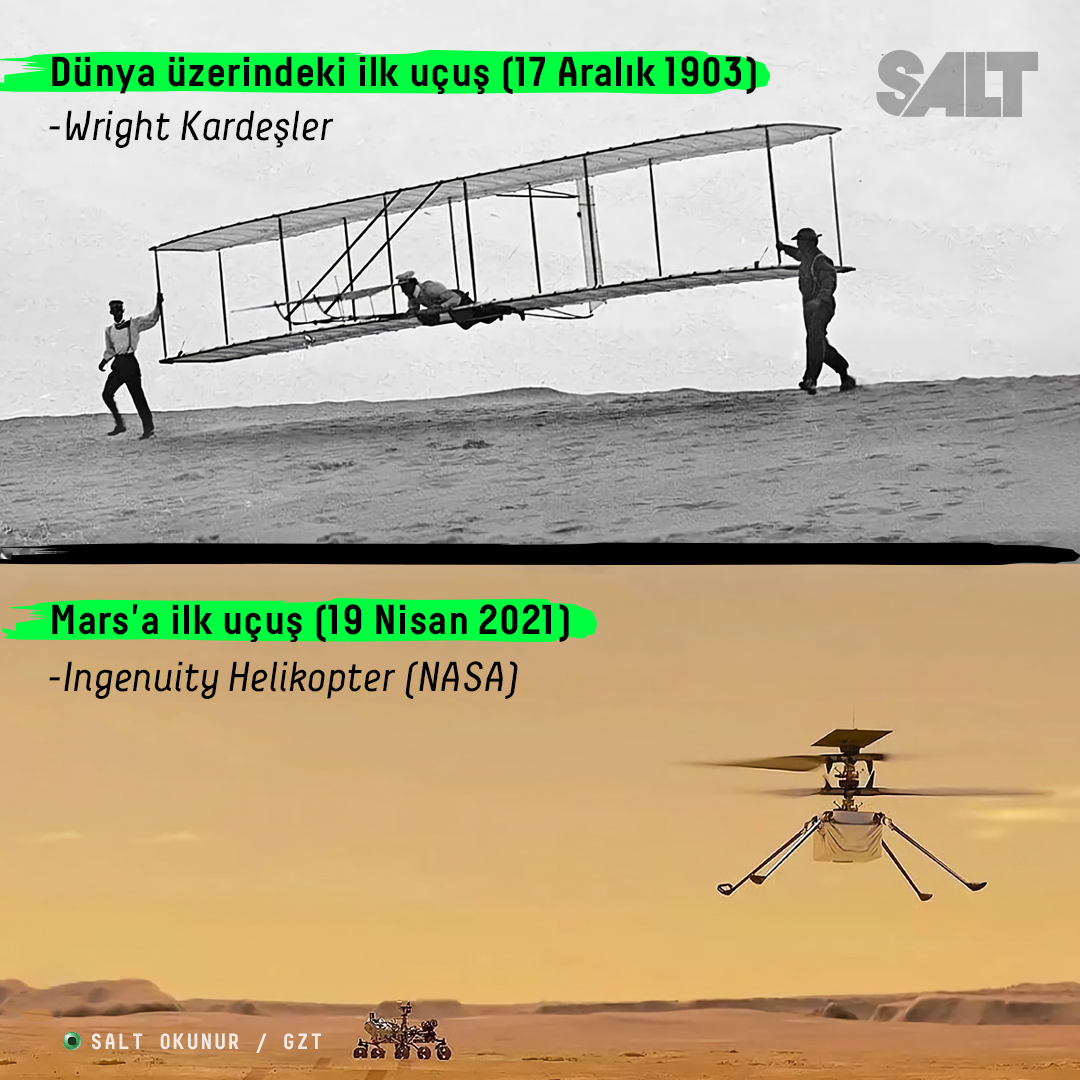 NASA'nın Perseverance adlı keşif aracının içinde Mars'a iniş yapan helikopter 19 Nisan 2021'de Mars üzerinde uçtu. Dünya dışında uçan ilk helikopter oldu.