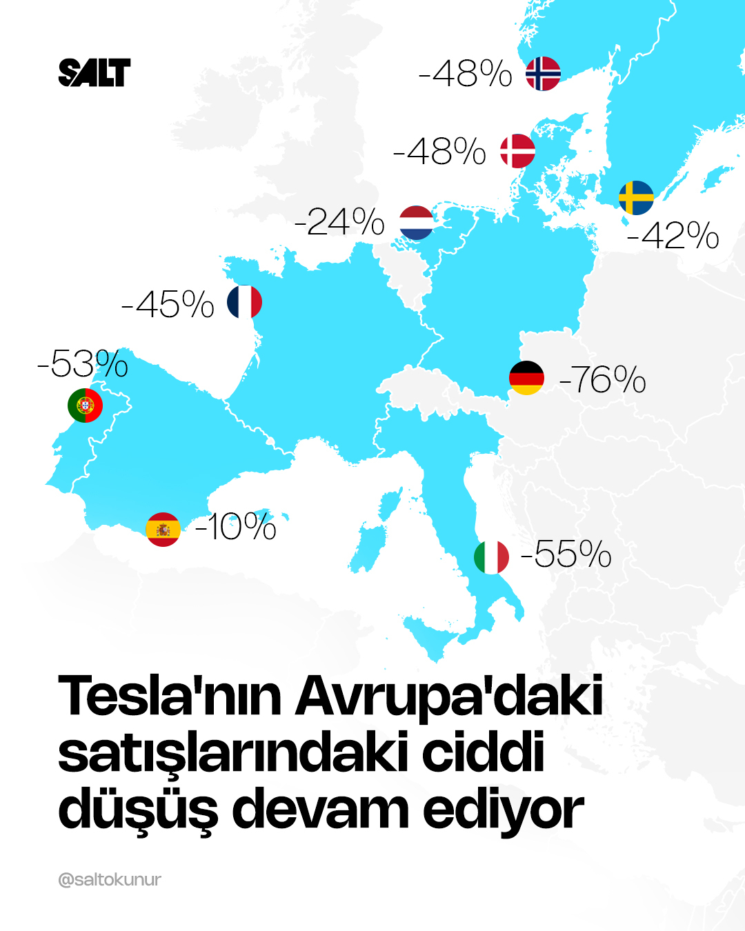 Elon Musk'ın siyasi tutumları, Tesla'nın satışlarını olumsuz etkiliyor. Özellikle Avrupa'da, Musk'ın aşırı sağ partilere verdiği destek nedeniyle Tesla'nın satışlarında belirgin düşüşler yaşanıyor.