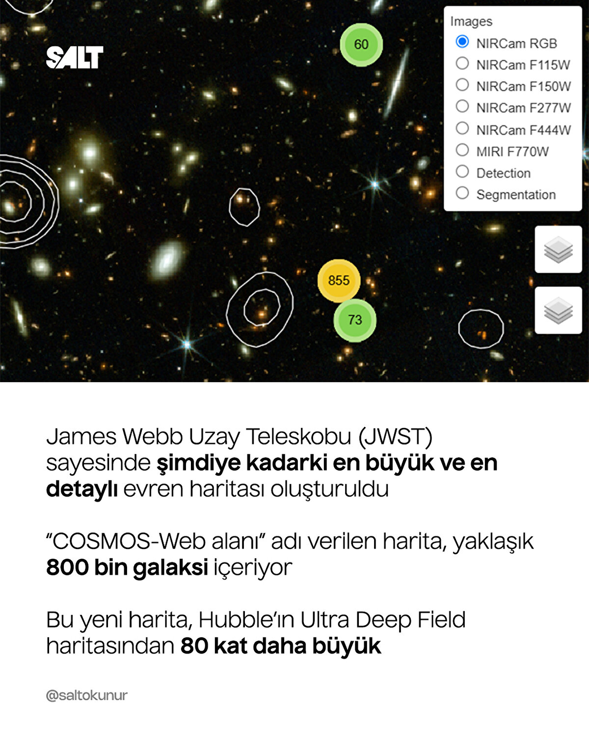 James Webb uzay teleskobu ile elde edilen görüntüler kullanılarak evrenin en büyük haritası yayınlandı.