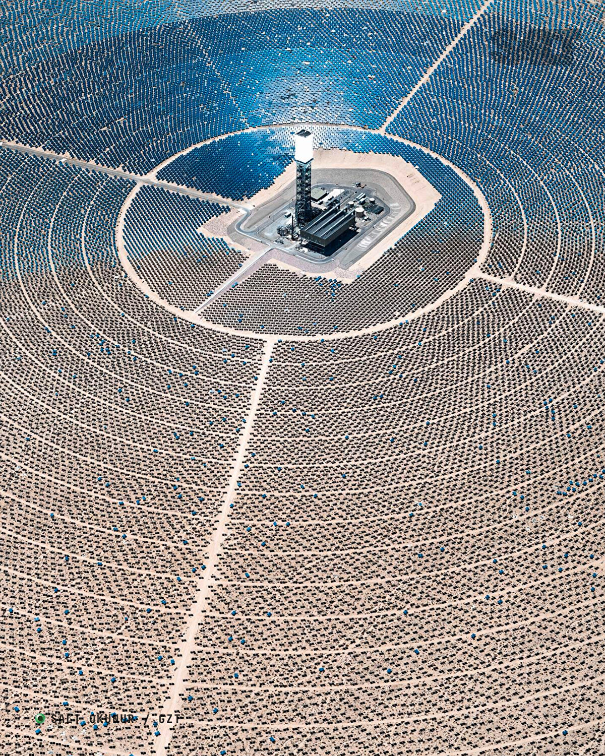Alman fotoğrafçı Tom Hegen , dünyanın dört bir yanından güneş enerji santrallerinin etkileyici görüntülerini çekiyor. Bu etkileyici görüntüleri yakalamak için Hegen, Amerika Birleşik Devletleri, Fransa ve İspanya'daki çeşitli güneş enerji santrallerini gezdi.