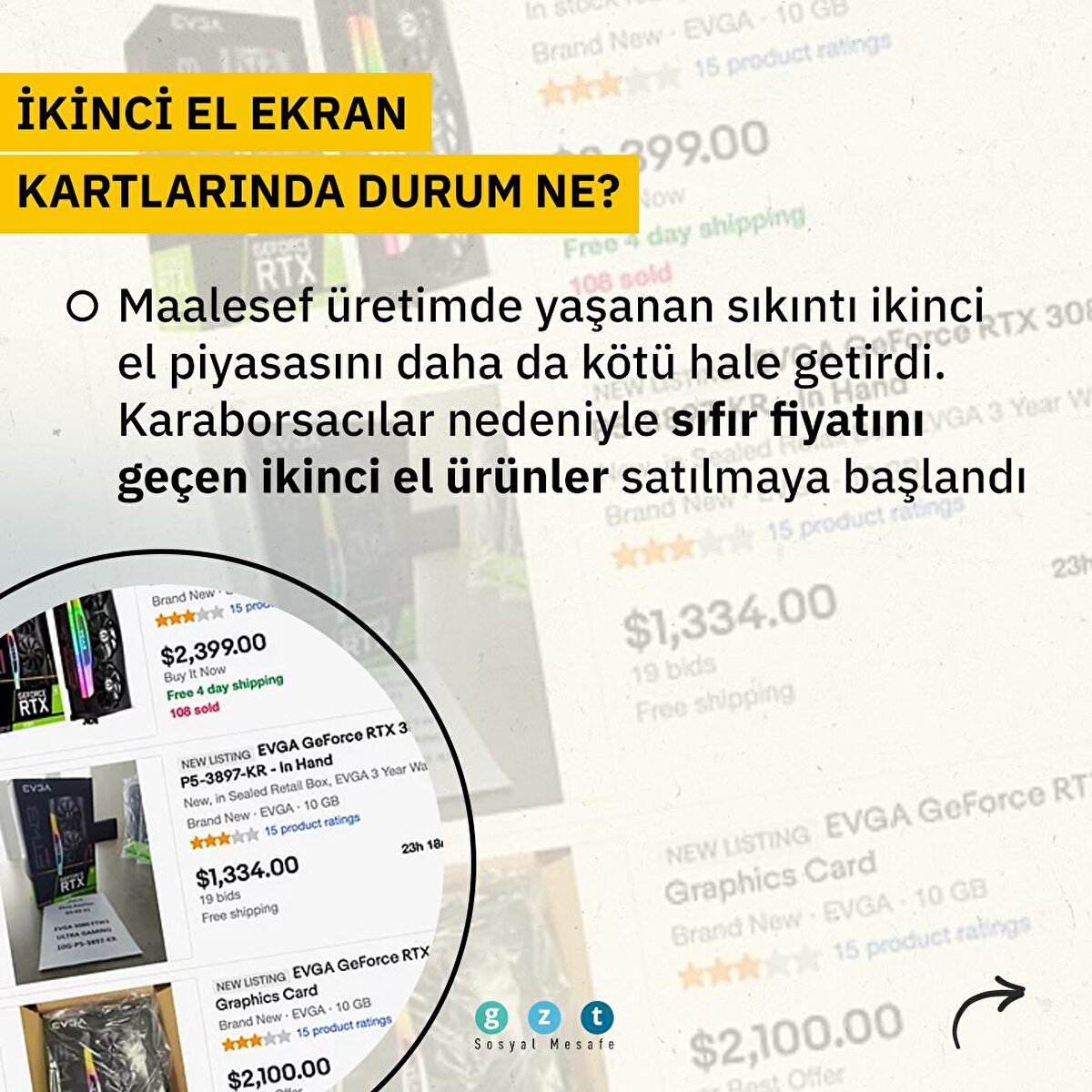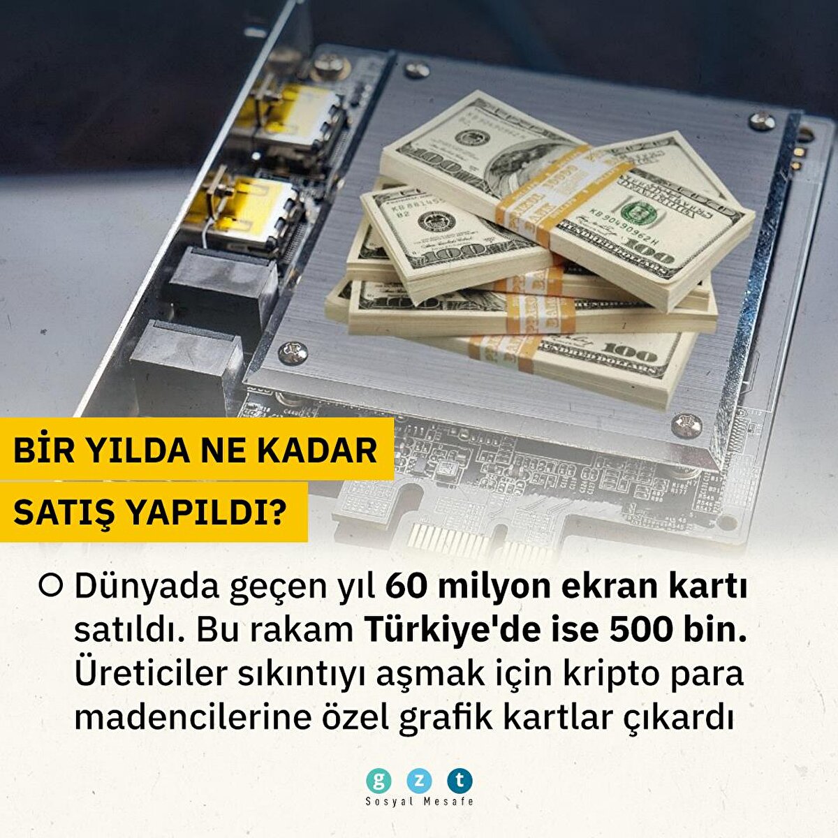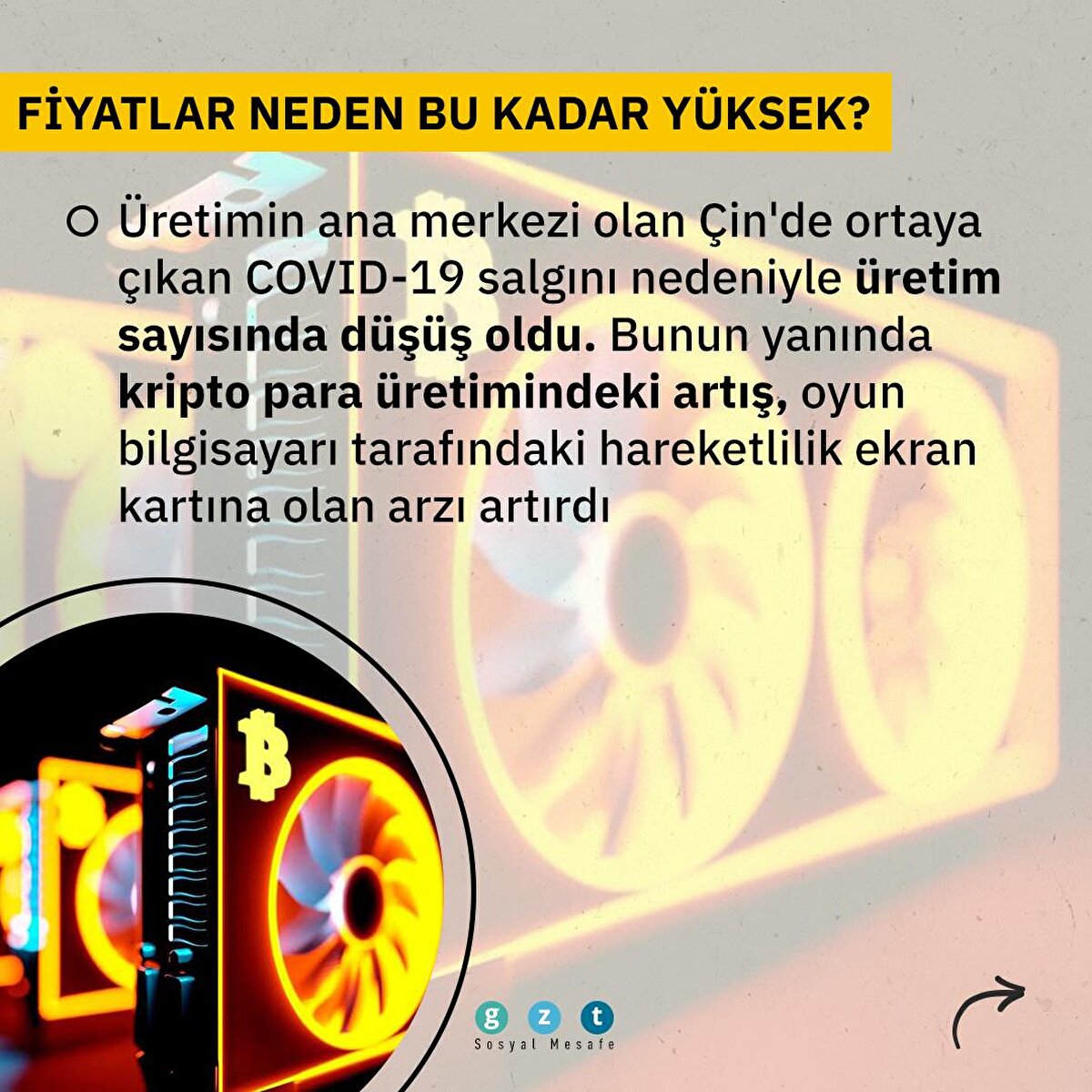 Bilgisayarın görüntü vermesini sağlayan ana birim olan ekran kartı temininde yaşanan kriz derinleşiyor. Pandemi döneminde üretimde yaşanan aksaklıklar ve ekran kartlarının kripto para madenciliği üretiminde kullanılmasıyla fiyatı üç katından fazla artan ürün, son 6 aydır karaborsaya düştü. Fiyatı 3000 TL ila 150 bin TL arasında değişen ekran kartlarını temin edip tüketiciye ulaştıran şirketler, talebe cevap verebilmek için aylar öncesinden sipariş almaya başladı. Sektör temsilcileri ikinci el fiyatları bile birinci elle yarışan ekran kartlarında normalleşmenin temmuzu bulabileceğini öngörüyor.