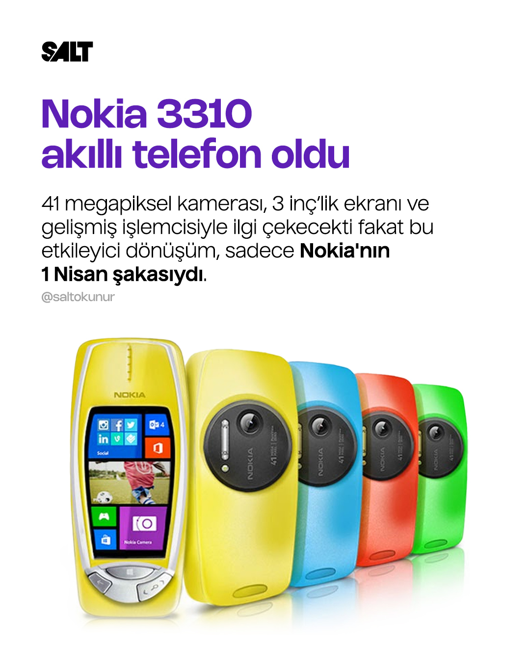 Yeni 3310, 41 megapiksel kamerası, 3 inç'lik ekranı ve çift çekirdekli işlemcisiyle teknoloji dünyasını şaşırttı. Nokia bu süper cihazı resmi olarak tanıttı. Ancak bu etkileyici dönüşüm, sadece bir 1 Nisan şakasıydı.
