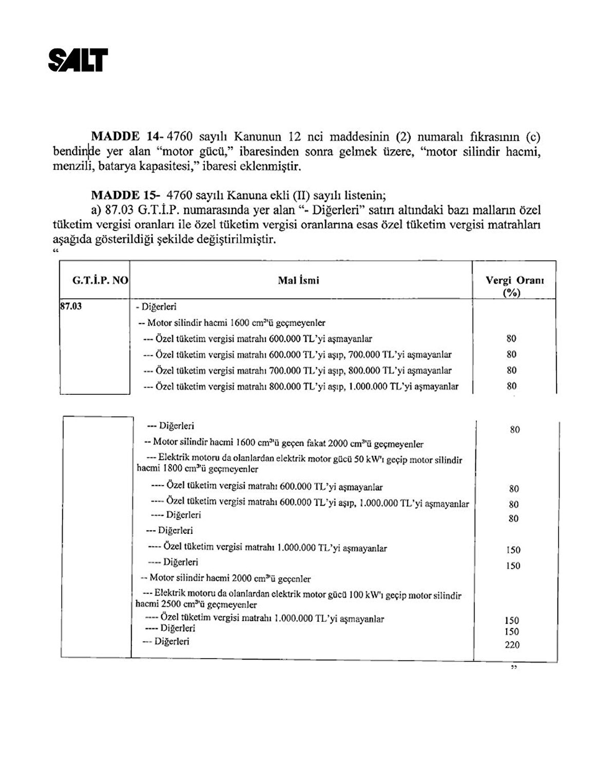 TBMM'ye sunulan yeni vergi düzenlemesine göre, otomobillerde en düşük ÖTV oranı artık %80 olacak. Üst dilimler ise %150 ve %220 olarak belirlenecek.