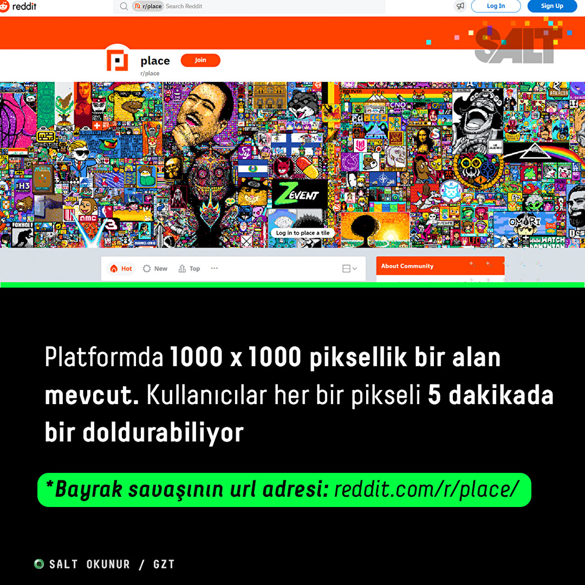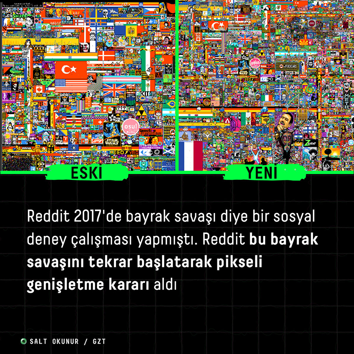 Reddit 2017'de bayrak savaşı diye bir sosyal deney çalışması yapmıştı. Reddit bu bayrak savaşını tekrar başlatarak pikseli genişletme kararı aldı.