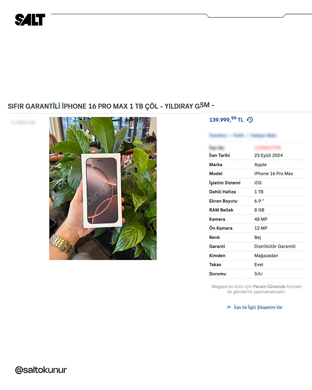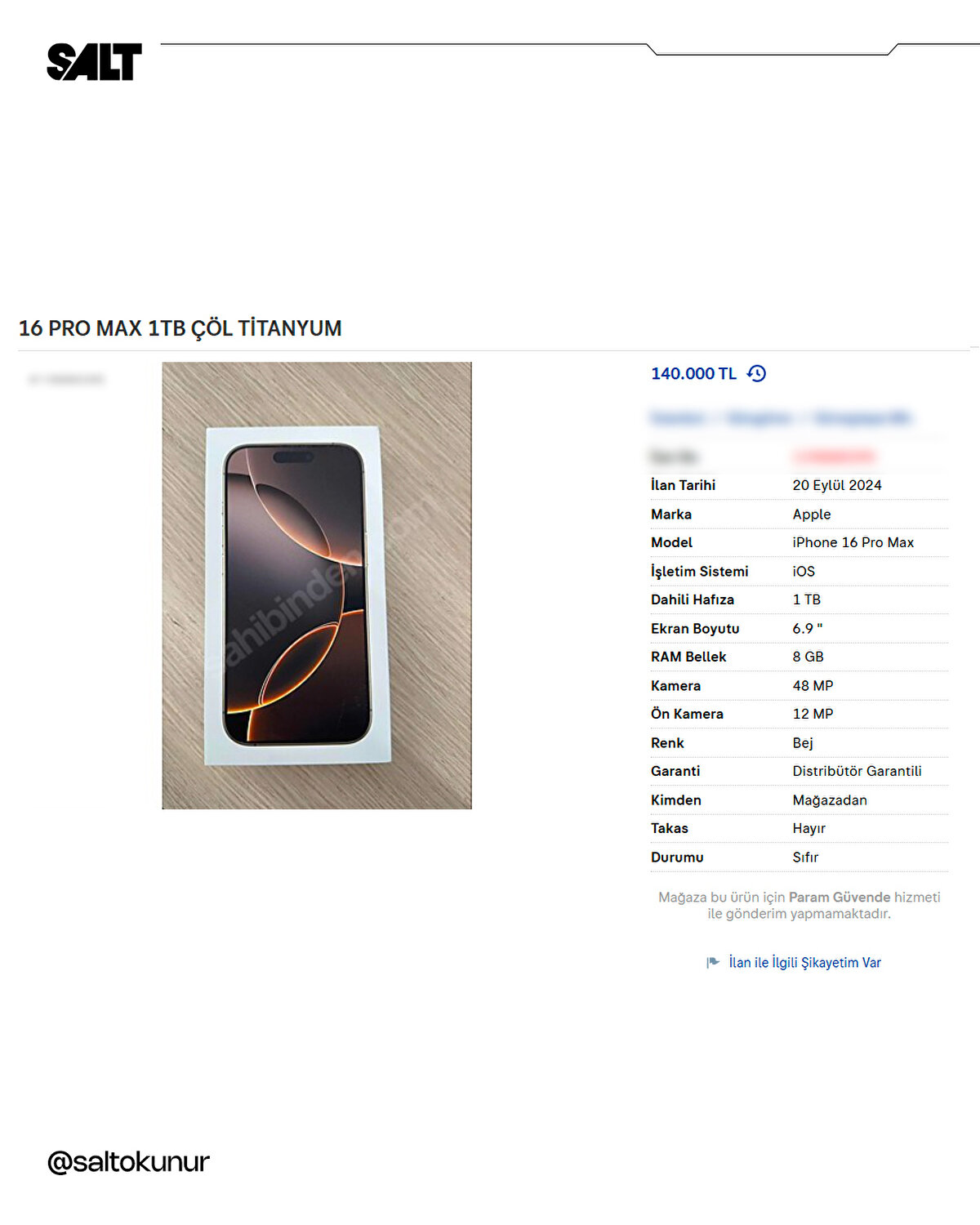 20 Eylül'de satışa çıkan iPhone 16 serisi için kullanıcılar Apple mağazalarının önünde geceden beklemeye başlamış hatta kamp kuranlar olmuştu, ancak son günlerde sıfır ve 2. el ürünlerin satıldığı web sitelerinde artan iPhone 16 serisi ilanları incelendiğinde olayın gerçek yüzünün daha farklı olduğu ortaya çıktı. Mağaza önünde kuyruk oluşturan ve geceden beklemeye başlayan vatandaşların büyük çoğunluğunun telefonu satmak için aldığı düşünülüyor. Satış fiyatlarıysa Apple'ın mağaza satış fiyatlarının bir hayli üstünde.