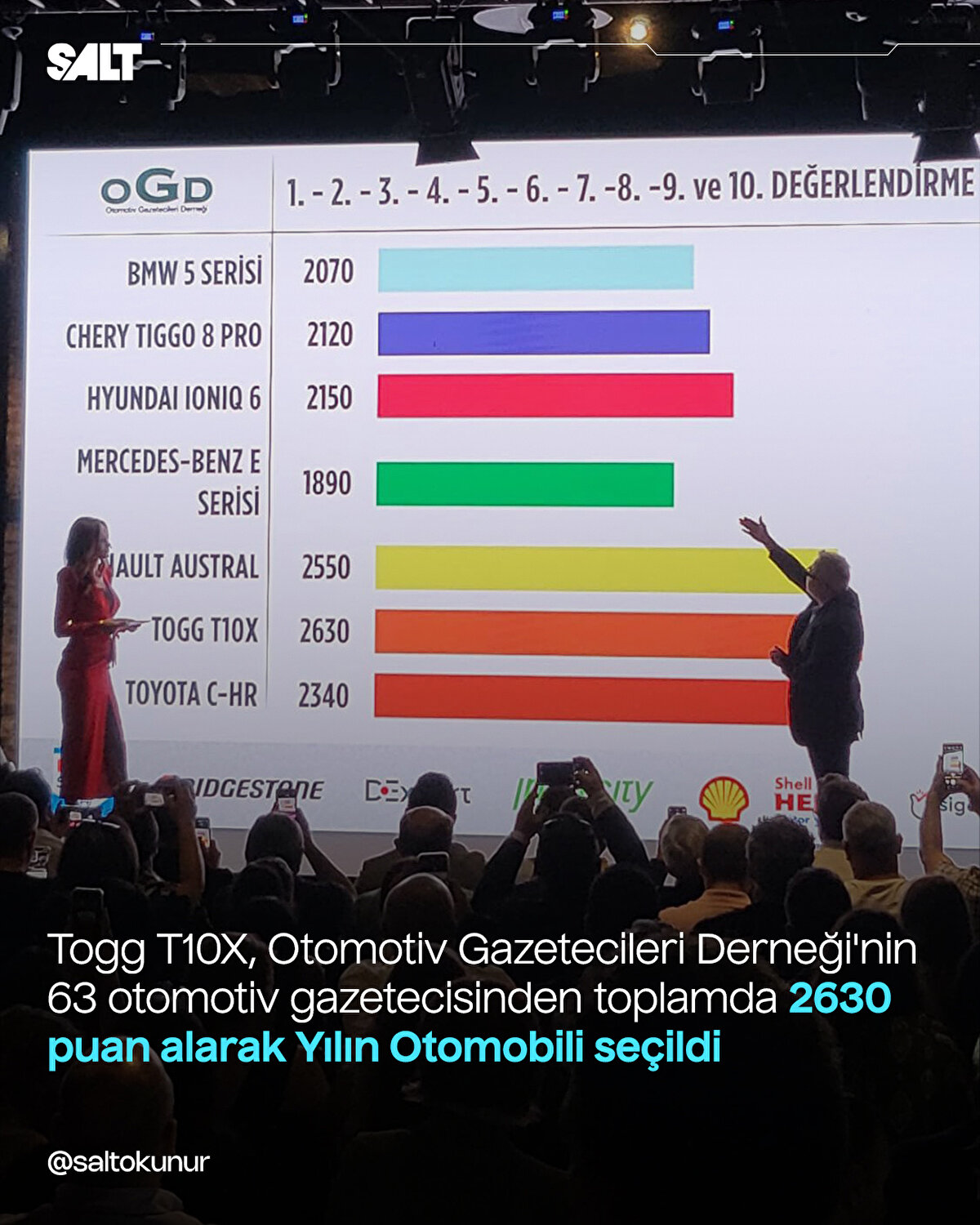 TOGG T10X, Otomotiv Gazeteciler Derneği tarafından yılın otomobili seçildi.