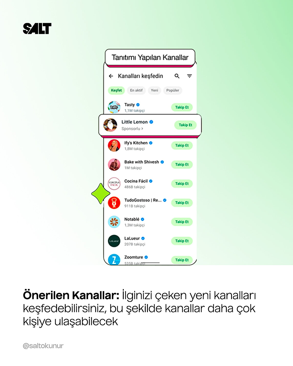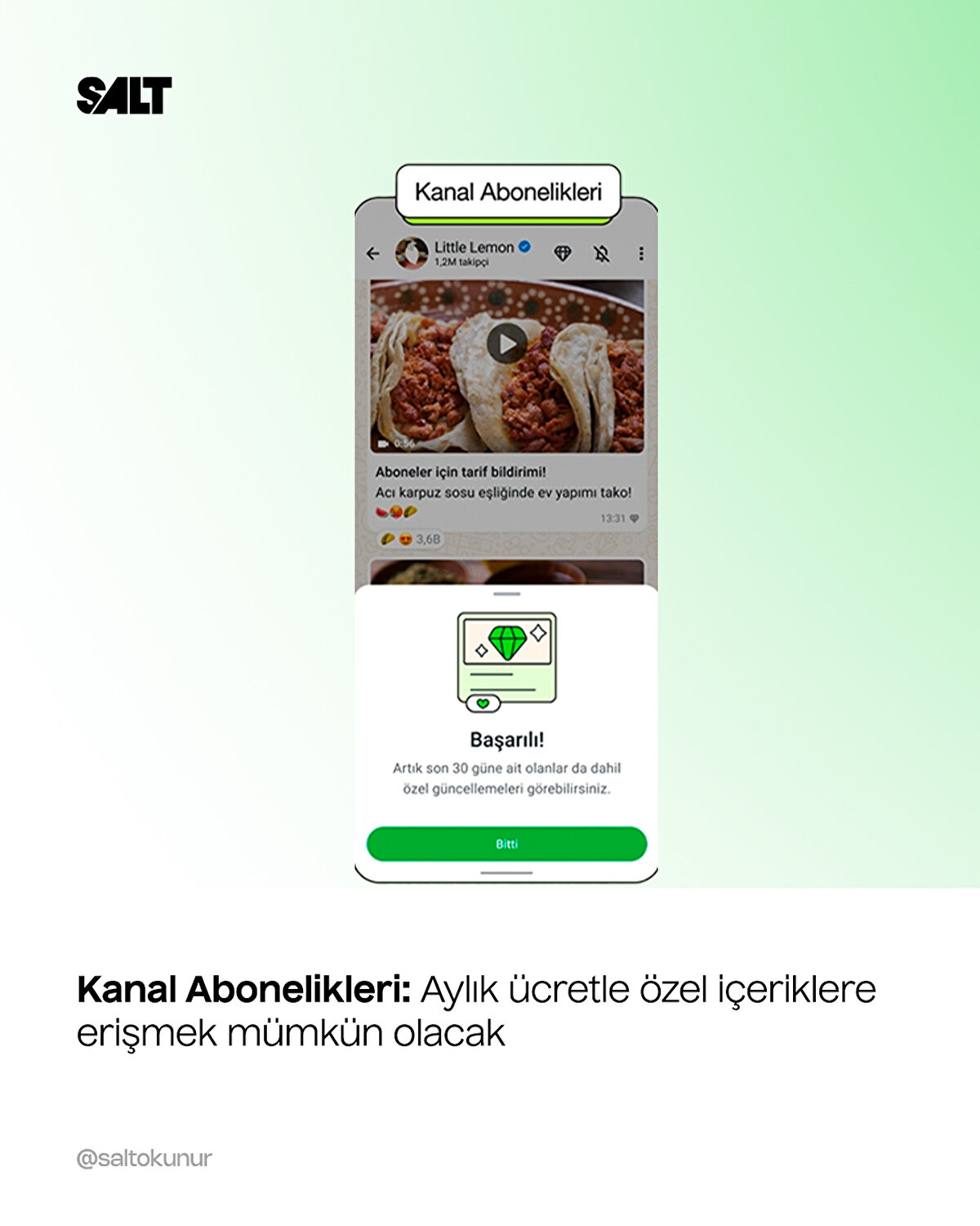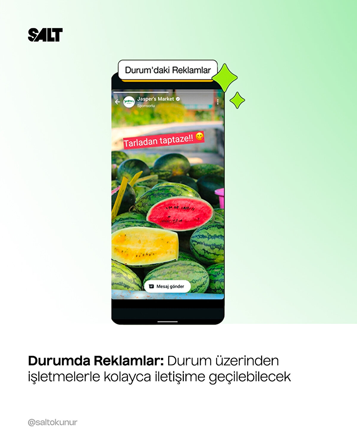 Önerilen Kanallar: İlginizi çeken yeni kanalları keşfedebilirsiniz, bu şekilde kanallar daha çok kişiye ulaşabilecek Kanal Abonelikleri: Aylık ücretle özel içeriklere erişmek mümkün olacak Durumda Reklamlar: Durum üzerinden işletmelerle kolayca iletişime geçilebilecek