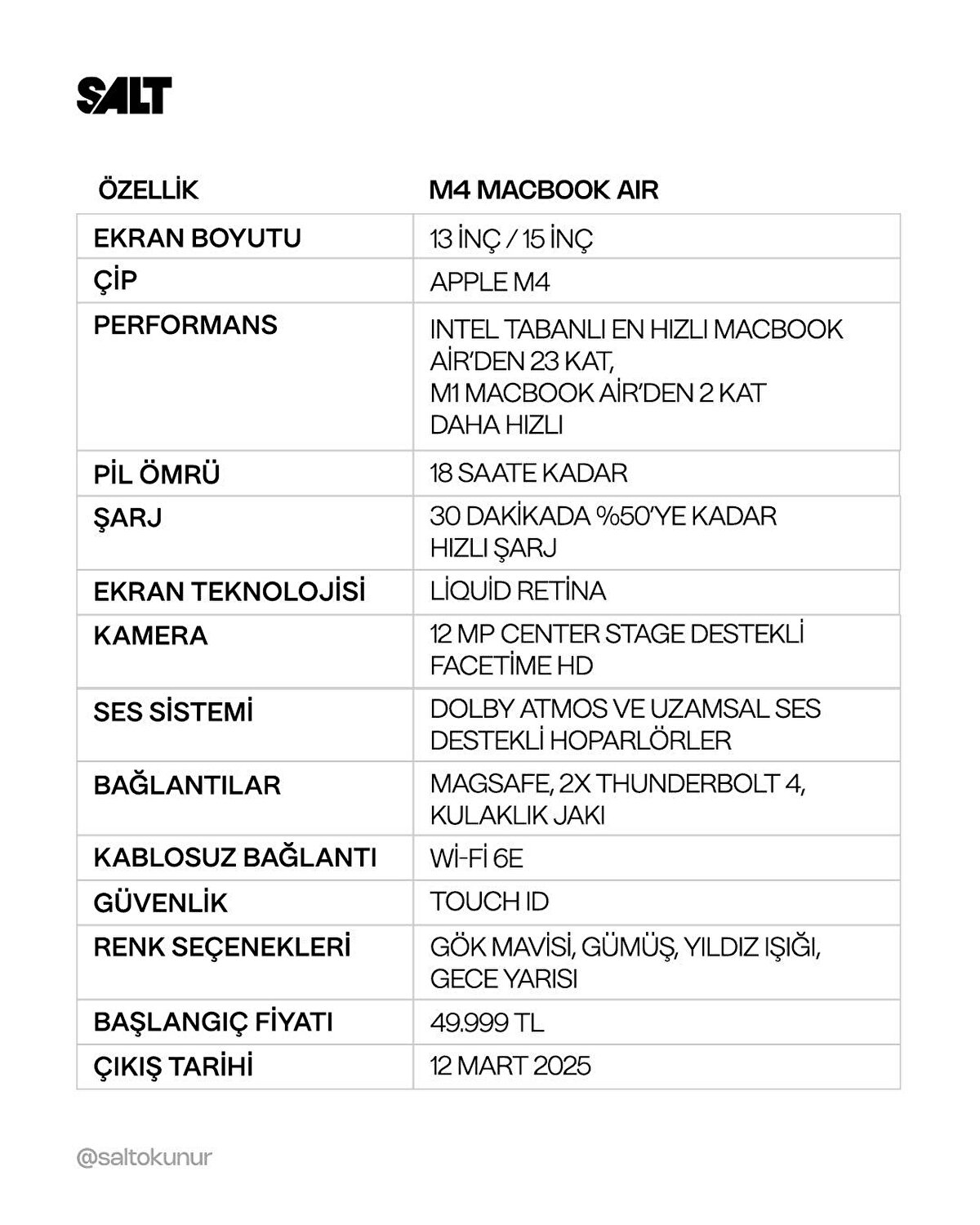 📌Apple, yeni M4 Macbook Air'i tanıttı. Tüm özellikler için sağa kaydır