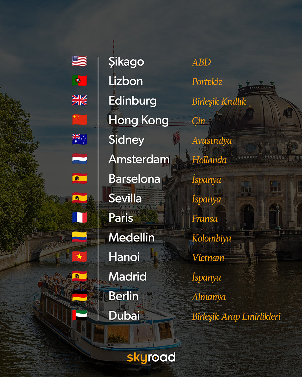 Bu şehirlerin ilk sırasında tarihi ve kültürel önemi ile Güney Afrika şehri Cape Town, 2. sırasında dünyanın en dost canlısı şehri olarak bilinen Tayland-Bangkok şehri gelirken 3. sırada ise tüm hareketliliği ve seçkin sanat sergileri ile New York onları takip ediyor.