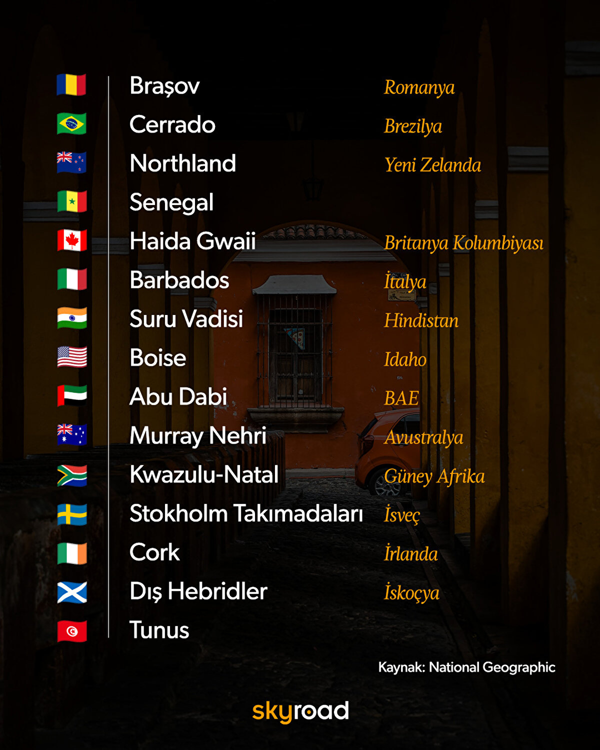 Her yıl olduğu gibi, National Geographic'in 2025 için hazırladığı seyahat listesi yine ilham verici rotalarla dolu. Bu yılki seçkide sıra dışı yerler öne çıkıyor: Drakula'nın memleketi Romanya'dan Güney Afrika'da yeni açılacak safari bölgesi Kwazulu-Natal'e kadar, macera dolu destinasyonlar var.