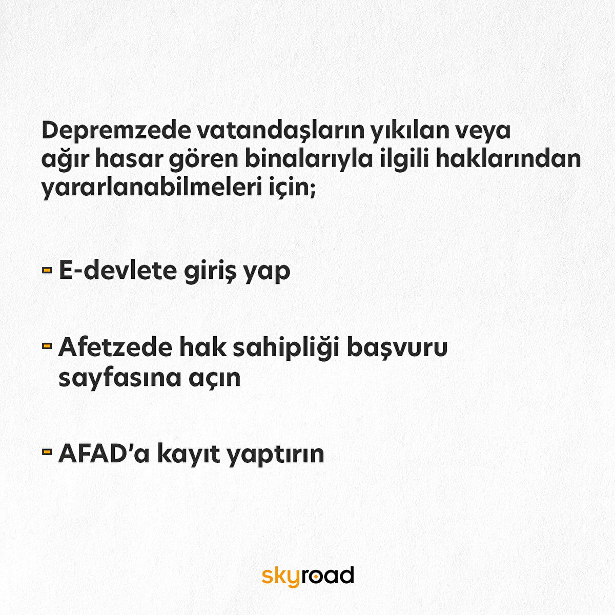 Bölgedeki depremzede vatandaşlar haklarında yararlanabilmek için e-devlet üzerinden 'Afetzede Hak Sahipliği Başvurusu' yapmaları gerekiyor.