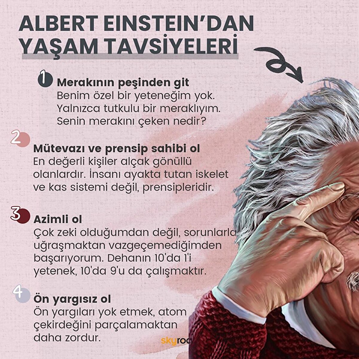 Bilim tarihinin en önemli dahilerinden biri, Einstein! 💡Ancak fikirlerinin etkisi bilim ile sınırlı değil, başarıları felsefe, sanat, edebiyat ve sayısız diğer disiplinleri etkiledi. ⠀ ⠀ 📌 Her dahinin bir ya da birden çok başarı sırrı var. Biz bugün fizikçi kimliğinin dışında, başarı hikayesi denilebilecek yaşamıyla, Einstein'ın verdiği sırları derledik.⠀