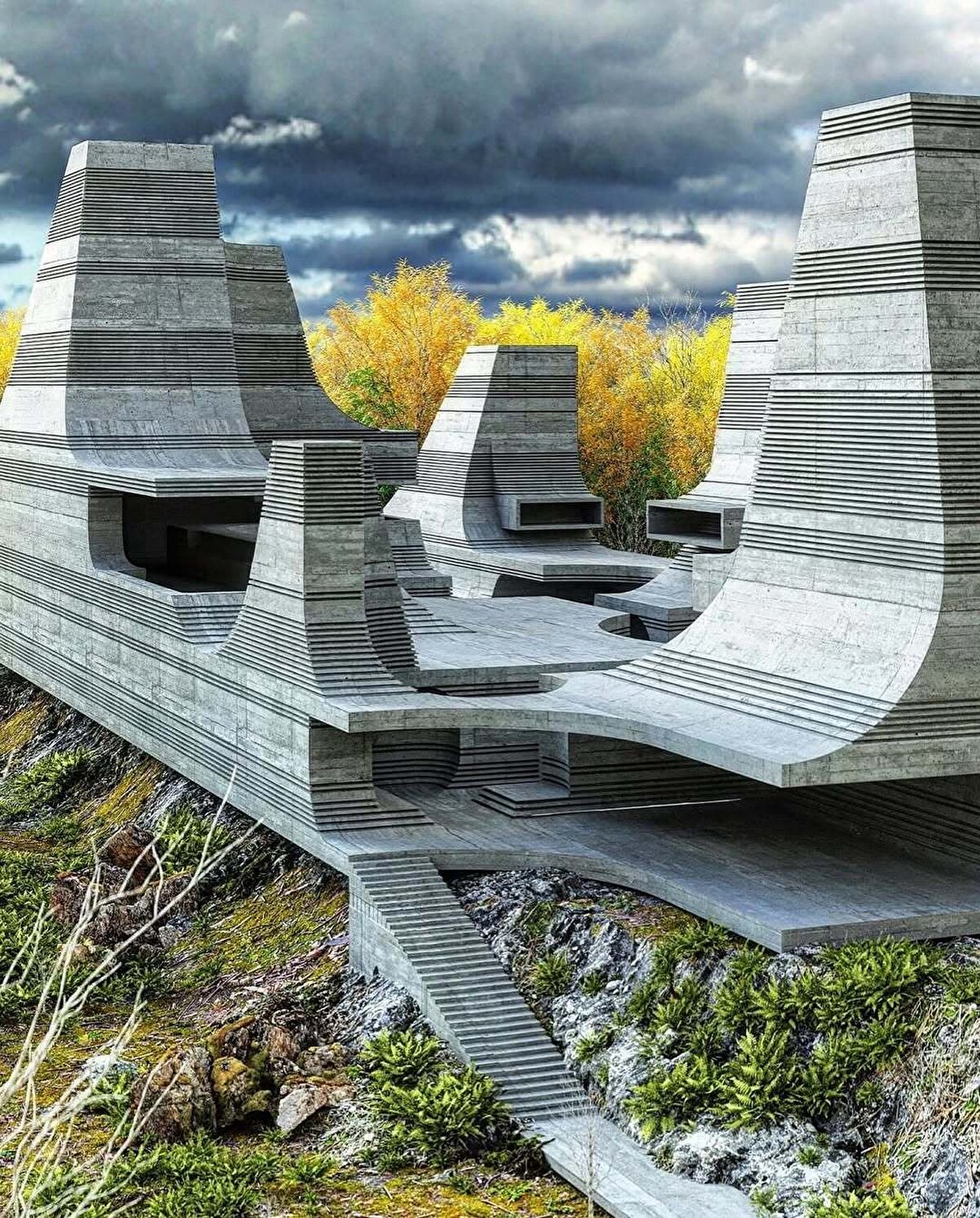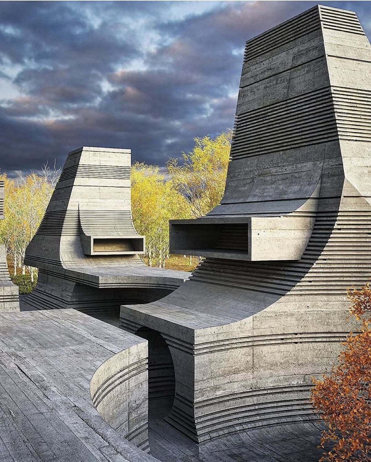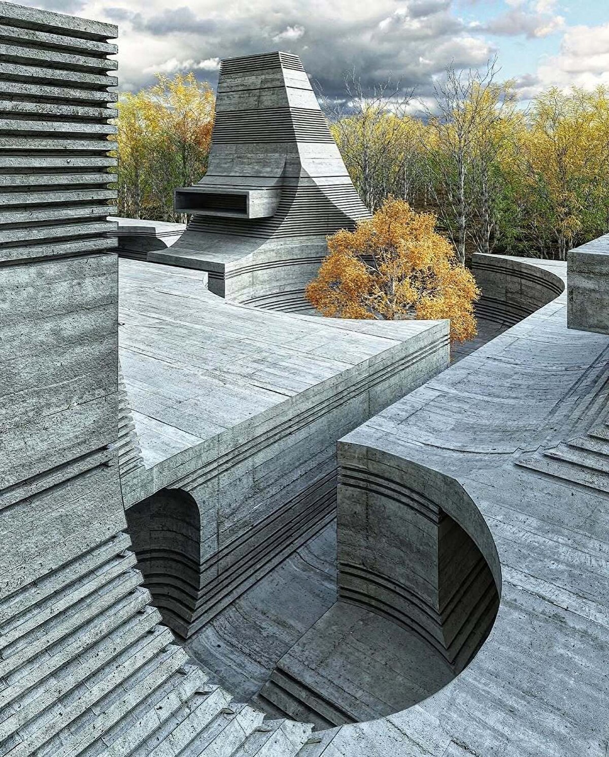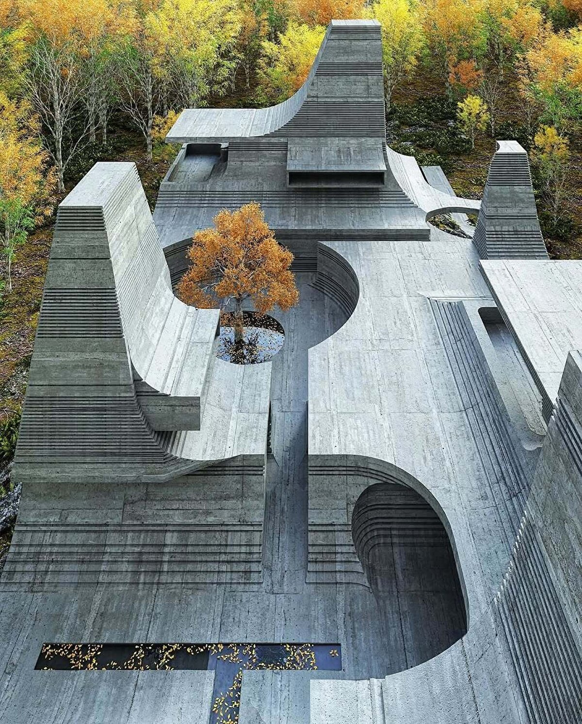 Hindistan'da bulunan bu yapı, tasarımcısı Mimar Amey Kandalgaonkar'ın yıllar önce ziyaret ettiği tapınağı hayal ederek tasarladığı mimari bir eser. Gözlemlediği hint tapınağını brütalist mimari tarzda yeniden tasarlayan @ameyzing_architect, tapınak içinde yer alan bölümlerin samimiyetini çağdaş bir görünümle yansıtmak için farklı bir formda inşa ederek hem geleneksel tapınak görünümünden sıyrılmış hem de modern bir izlenim bırakan bi çalışmaya imza atmış. Aynı forma sahip ama birbirlerinden farklı yönlere doğru konumlanmış şekil verilmiş beton parçaları aynı zamanda modern bir kayak pistine de benziyor.