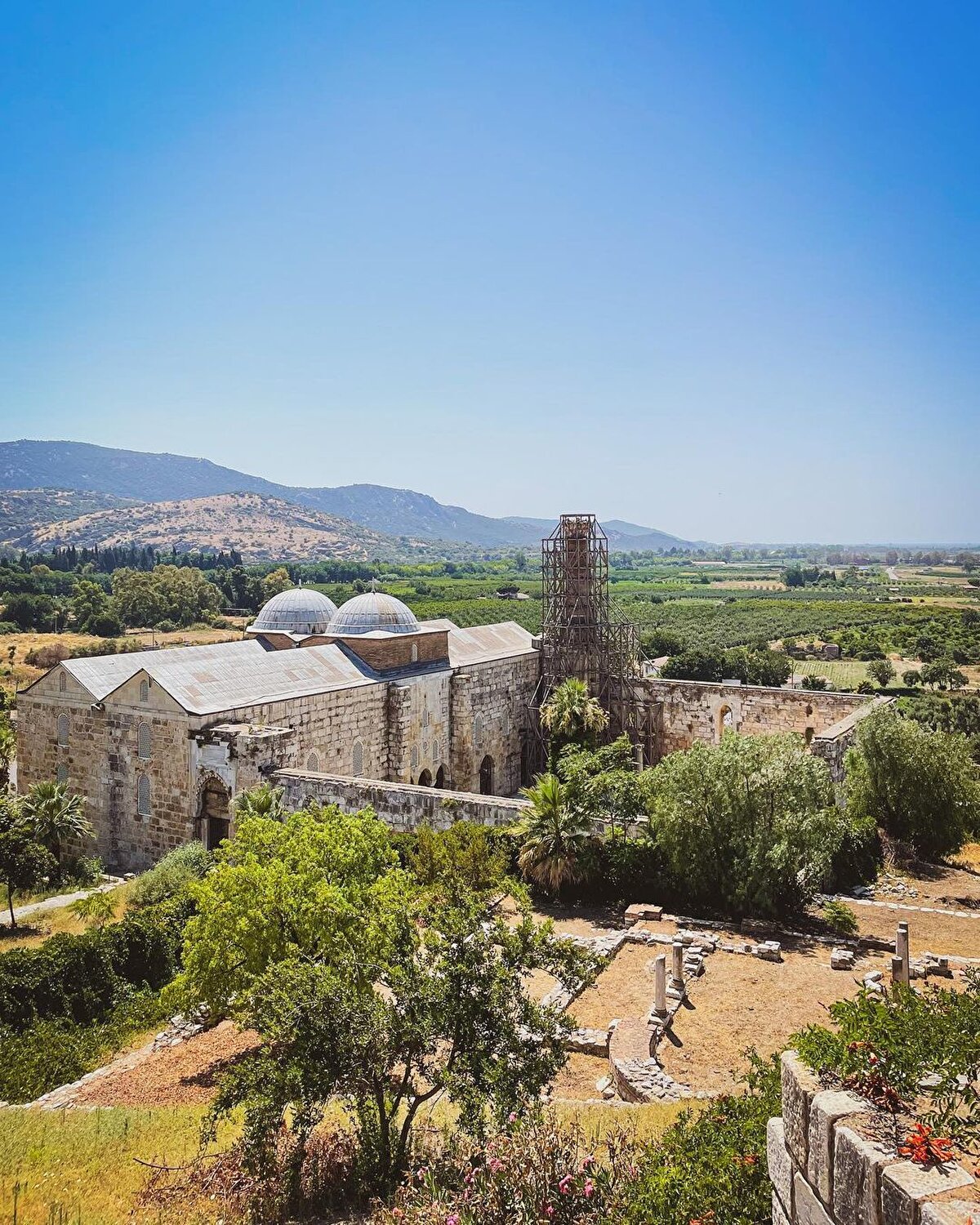İsa Bey Cami, İzmir'in Selçuk ilçesinde 1375 yılında Aydınoğlu İsa Bey tarafından yaptırılıyor. 19. yüzyılda kervansaray olarak da kullanılan cami, Şamlı mimar Ali İbn-el Dımışkü'nin önemli eserlerinden birisi. Cami, birçok medeniyete ev sahipliği yapan ve aynı zamanda döneminde önemli dini merkez olan ilçede simetrik olmayan bir arazinin yamaç eteğine inşa ediliyor. Yamaca konumlandırılan iki giriş kapısı, batı ve doğu tarafında yer almakta. Orta kısmında çok süslü ve kitabeli taç kapı yer alıyor. Evliya Çelebi'nin Seyahatnamesin de yer verdiği tarihi ve mimari açıdan değerli olan cami, yapılan değişikliklerle bugün ki halini alıyor. Günümüzde bir tanesi yıkılmış olsa da Anadolu Beylikler döneminde nadir görülen iki minareli camilerden birisi. Mimari ve plan şeması kadar süsleme özellikleriyle de dikkat çeken cami, pencereler ve zengin taş süsleme örnekleriyle ziyaretçilerini etkiliyor.