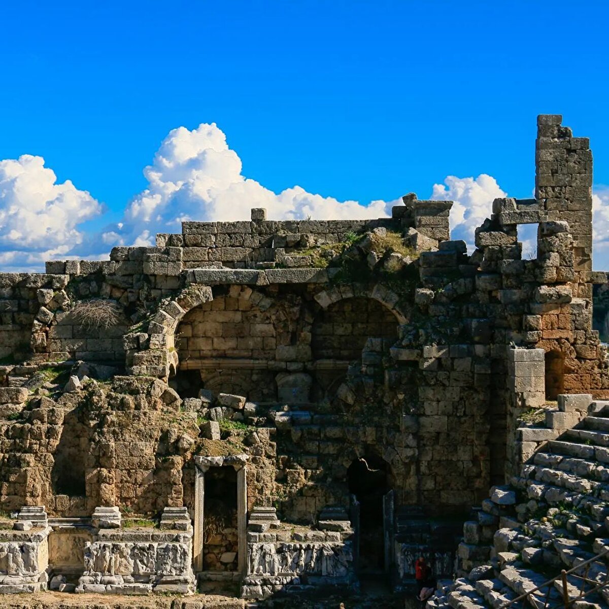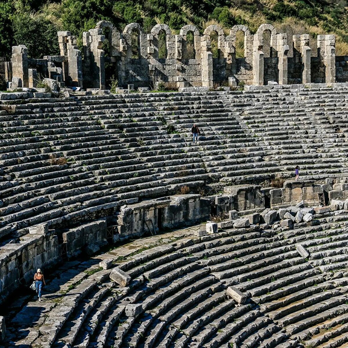 Antalya'nın Aksu ilçesi sınırlarında kalan Perge Antik Kenti, kent merkezinin 17 km doğusunda bulunuyor. Hitit döneminde varlığını sürdürdüğüne inanılan ve 'Parha' diye bilinen kent, Roma döneminde Anadolu'nun en düzenli kentlerinden birisi. MS 1. yüzyılda inşasının tamamlandığı biliniyor. Kent, ilk parlak devrini 4. yüzyıl Hellenistik dönemde yaşıyor. Altın çağı Roma İmparatorluğu egemenliğinde yaşanan bu dönemde kentte, günümüzde ziyaretçilerinin yoğun ilgisini çeken tiyatro, stadyum, kent kapısı, önemli kamu yapıları, hamamlar, su kanalları gibi düzenlemeler yapılıyor. Son parlak dönemde Bizans İmparatorluğu döneminde yaşanıyor ve Hristiyanlığın etkisi ile dinin önde gelenlerinin en çok ziyaret noktası oluyor. Şehirde görkemli yapıların inşa edilmesiyle antik kent “Metropolit Kent" kimliğini kazanıyor. Perge, şehir planının esasını biri doğu-batı diğeriyse kuzey-güney yönünde uzanan iki ana cadde oluşturuyor. Antik kentin içerisinde üç ana bölümden oluşan antik bir tiyatro bulunuyor ve 15 bin izleyici kapasiteli olduğu biliniyor. Antik kent içerisinde halen ayakta olan antik stadyum mevcut. Antik kent, UNESCO Dünya Kültür Mirası Geçici Listesi içerisinde yer alıyor. 2018 yılı Troya antik kentiyle birlikte Perge Yılı da ilan edildi.
