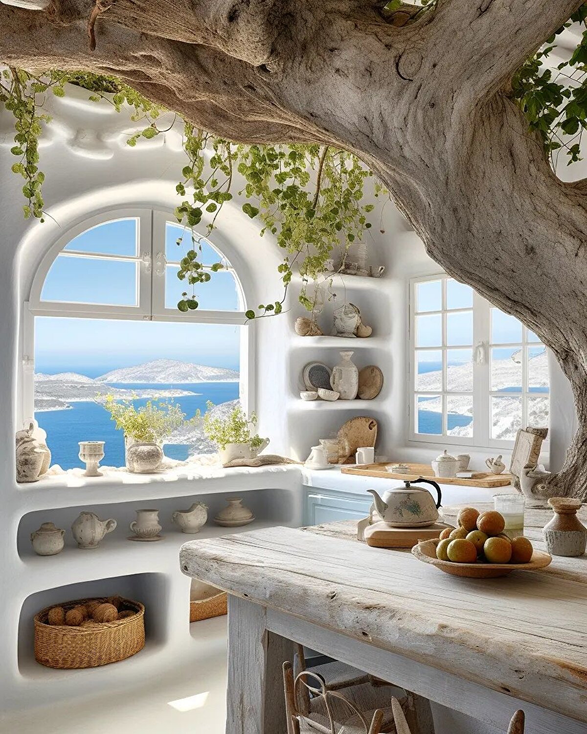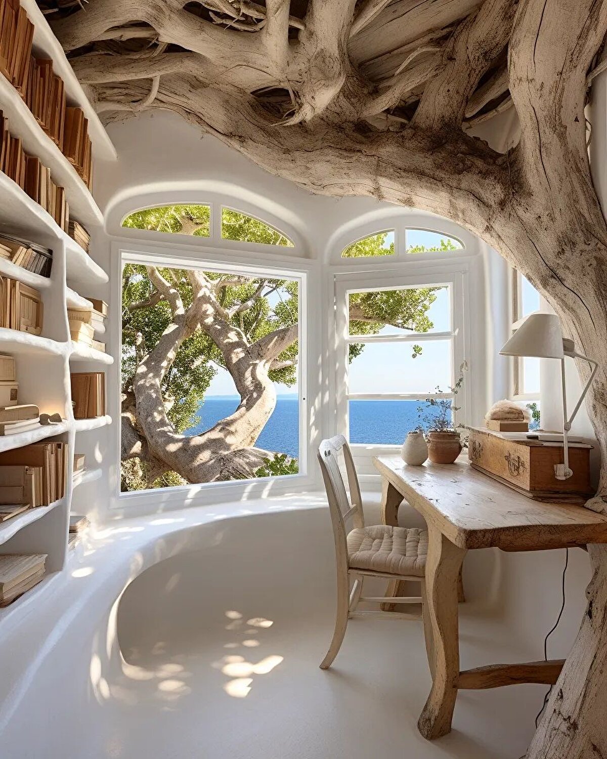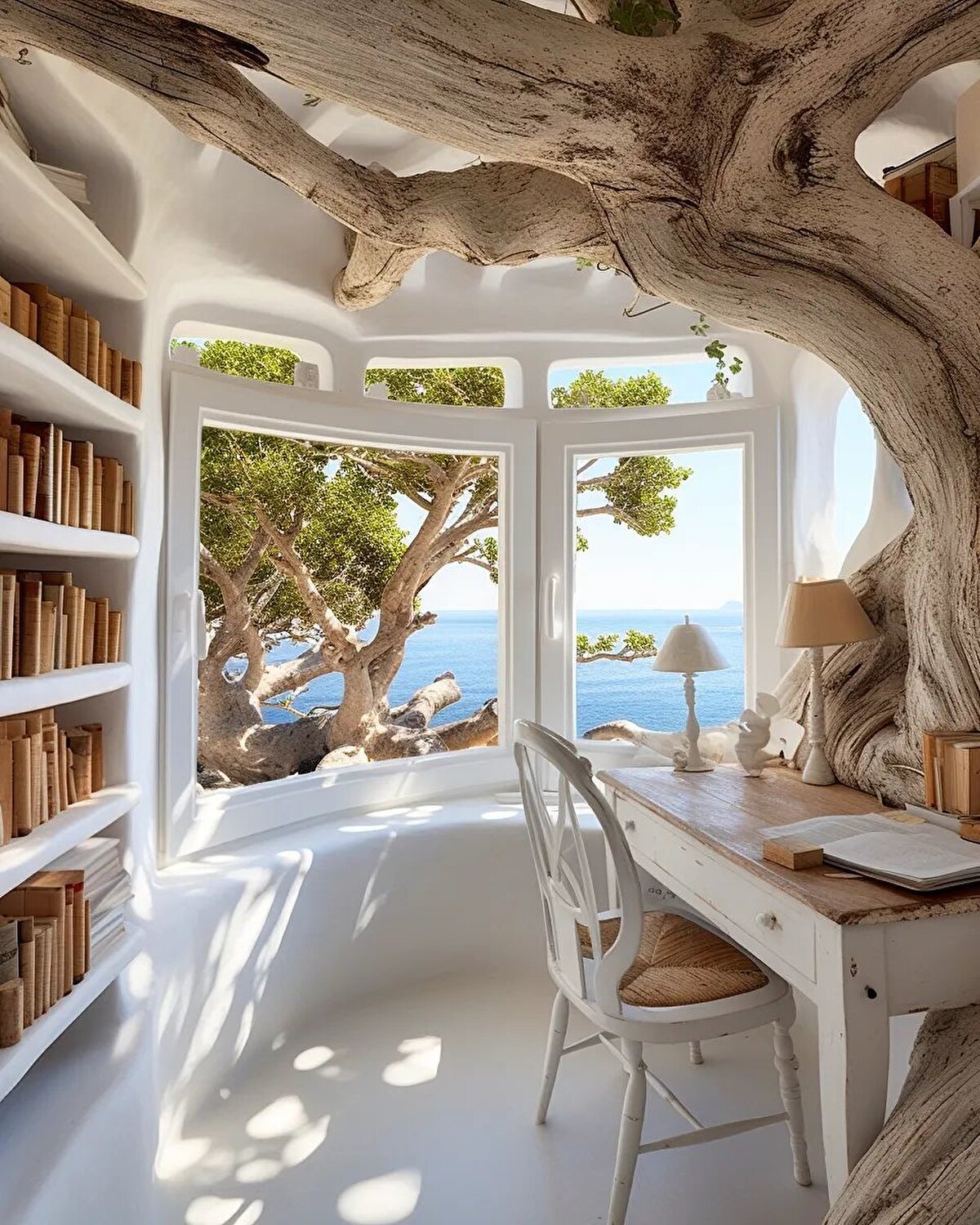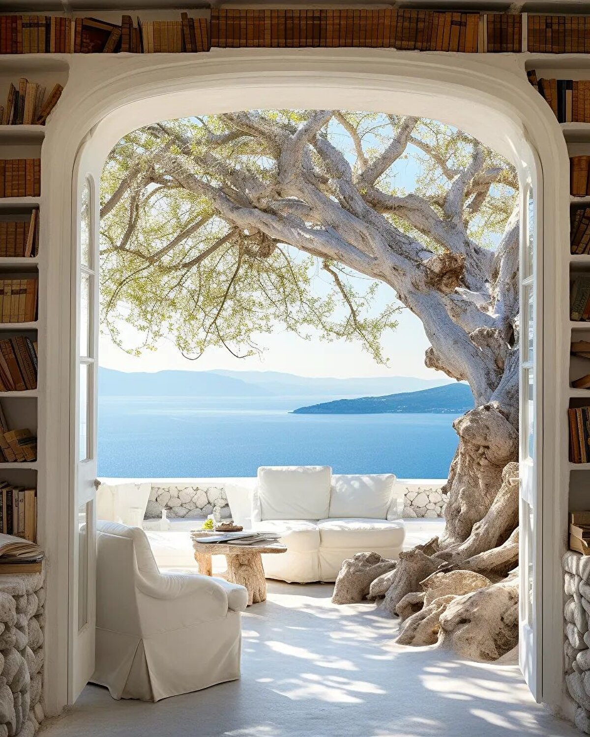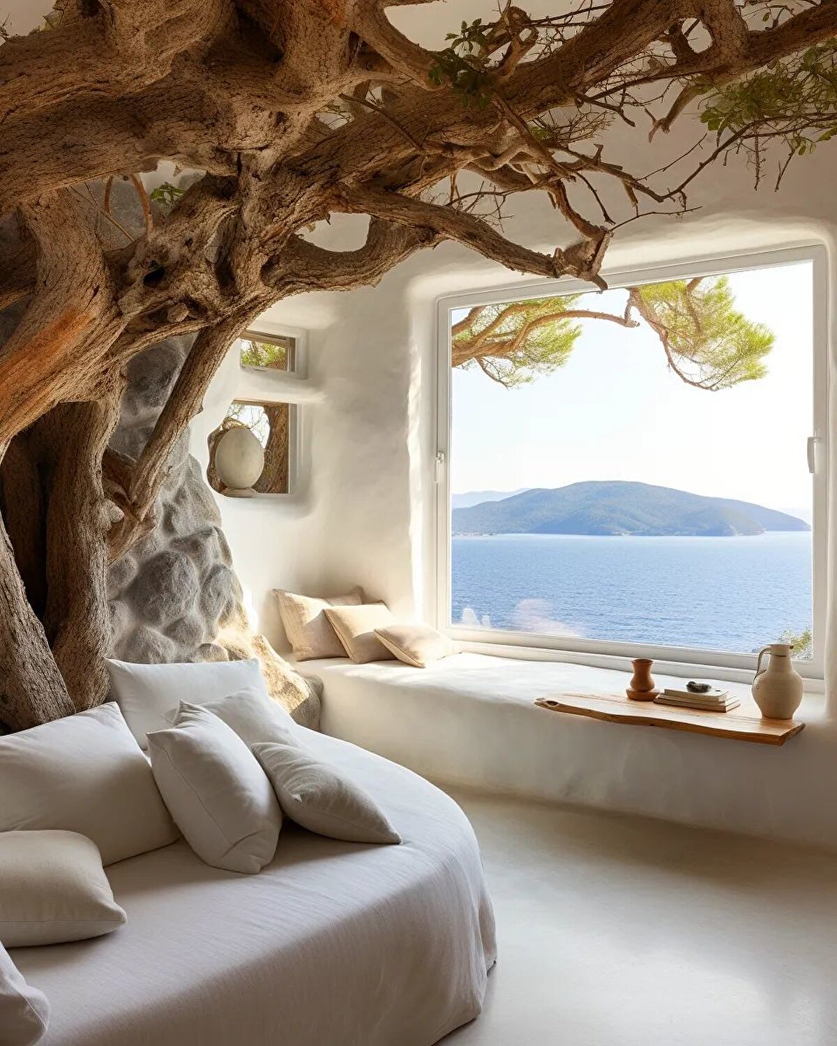 Antik zeytin ağaçlarıyla ünlü olan Yunanistan'ın Girit Adası, tasarımcı Ben Myhre gizemli ve sihirli bir dünya oluşturuyor. Dünyanın bilinen en eski zeytin ağaçlarına ev sahipliği yapan ada, @benmyhre Midjourney teknolojisini kullanarak yaptığı antik ağaç içerisindeki ev; tarih, doğa, mimari ve coğrafyanın adeta birleşme noktası oldu. Turizmin gözde adalarından biri olan Girit Adası; tarihi zeytin ağaçları doğası, sakin ve huzurlu ortamı, masmavi denizi ve gökyüzü ile yapay zeka aracılığıyla bir araya gelerek muhteşem bi' ambiyans oluşturuyor. Tasarımlarıyla insan hayatını etkilemek isteyen tasarımcı Ben Myhre, Girit denilince artık ilk aklımıza gelecek olan kareleri yapay zeka desteğiyle bizlere sunuyor.