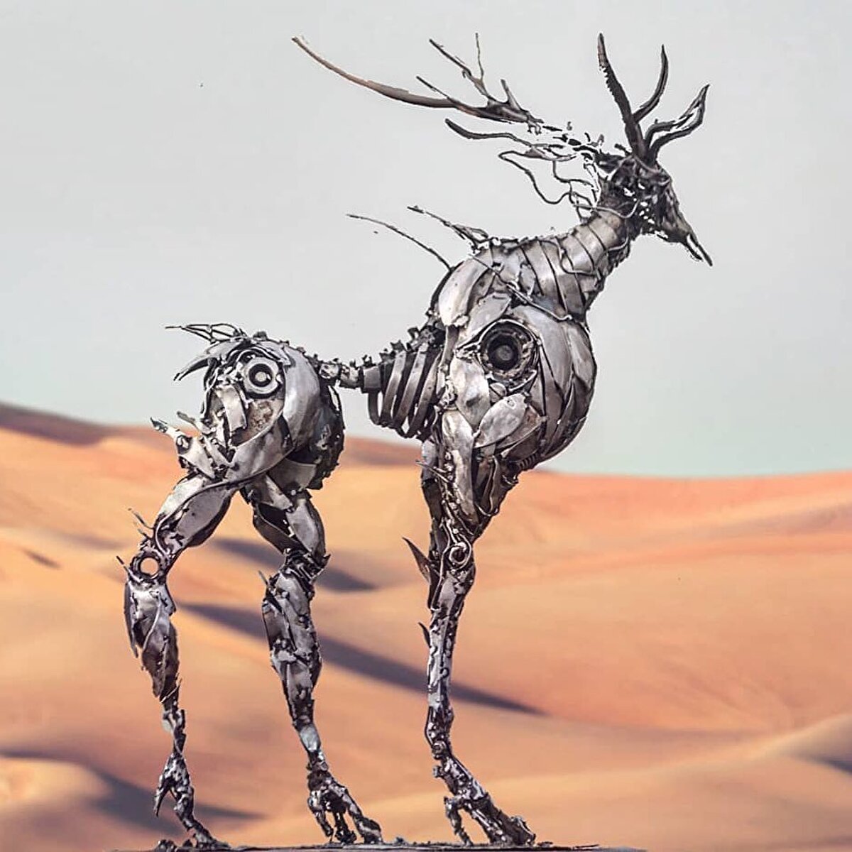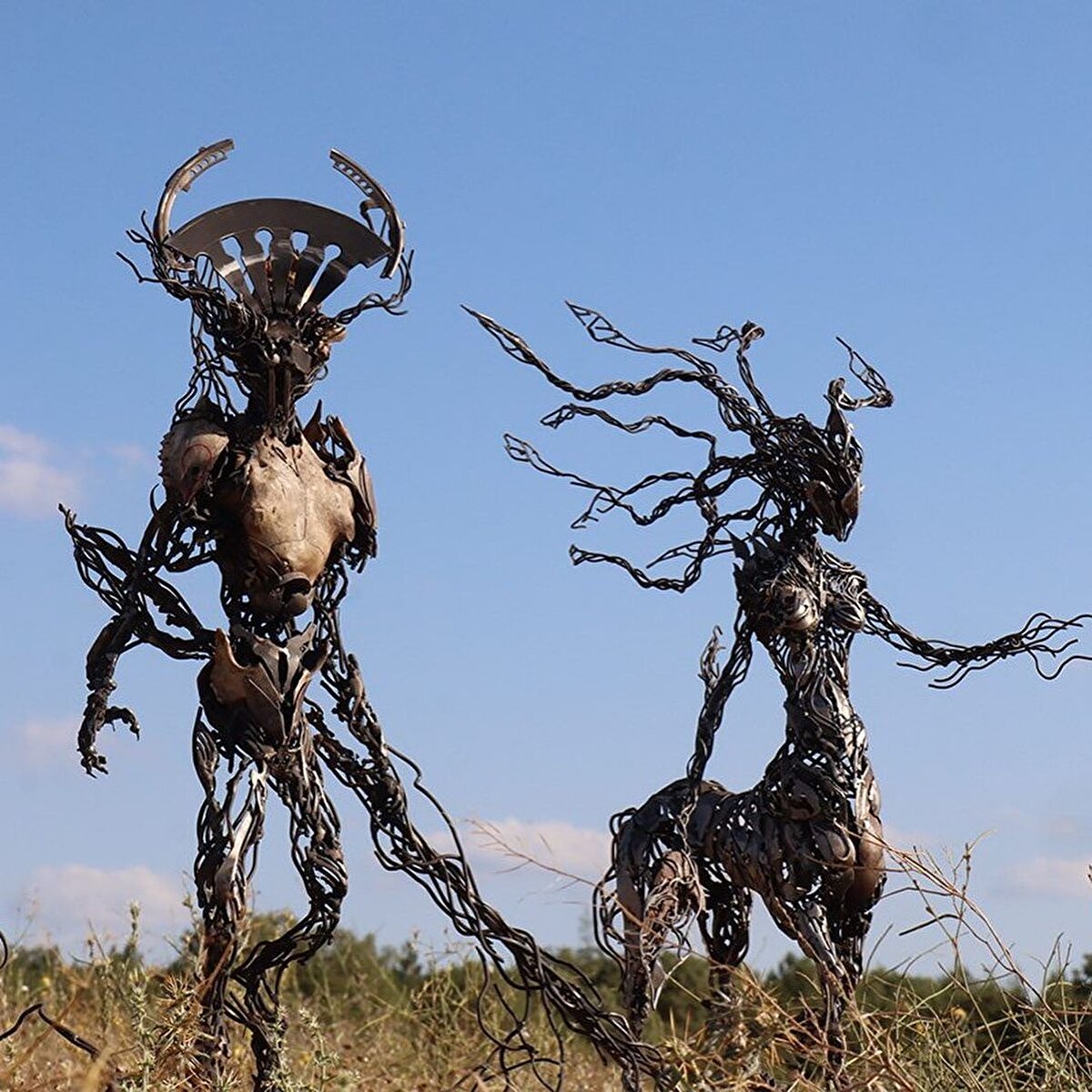 Hurda olarak baktığımız şeylere dönüp bir daha bakmamızı sağlayan, Türk heykeltraş Cem Özkan. ✨ Favorimiz yine hepsi, seninki hangisi? 👀⠀ ⠀ 📌 Hurda malzemelerle yaptığı heykelleriyle adını duyuran Cem Özkan, doğanın gücünün metalle sergilenmesini amaçlıyor. Anadolu Üniversitesi Güzel Sanatlar Fakültesi Heykel Bölümü'nde aldığı eğitim sırasında metale olan ilgisi artan sanatçı, çizdiği ve düşündüğü olguları taşıyabilecek bir malzemeyle tanıştığını hissediyor. Figüratif denemeler de yaptığını söyleyen Özkan, “Metalin yoğunluğunu organik materyallerle ve atık parçalarla birleştirip işlerimi bu yönde tamamladım." diyor ve ekliyor:⠀ ⠀ “Hayat, bilgiyi, ortaya koyabilmek istediğin doğruları, sevdiğin işi yakalamak adına savaşıp bunu kendine kanıtlamaktır. Ve sanat bu yolda en uyumlu harekettir, dışavurumdur, kendini bulabilme güdüsüdür."⠀ ⠀ Harika çalışmalar için @cem.oz.kan 'a teşekkürler.⠀