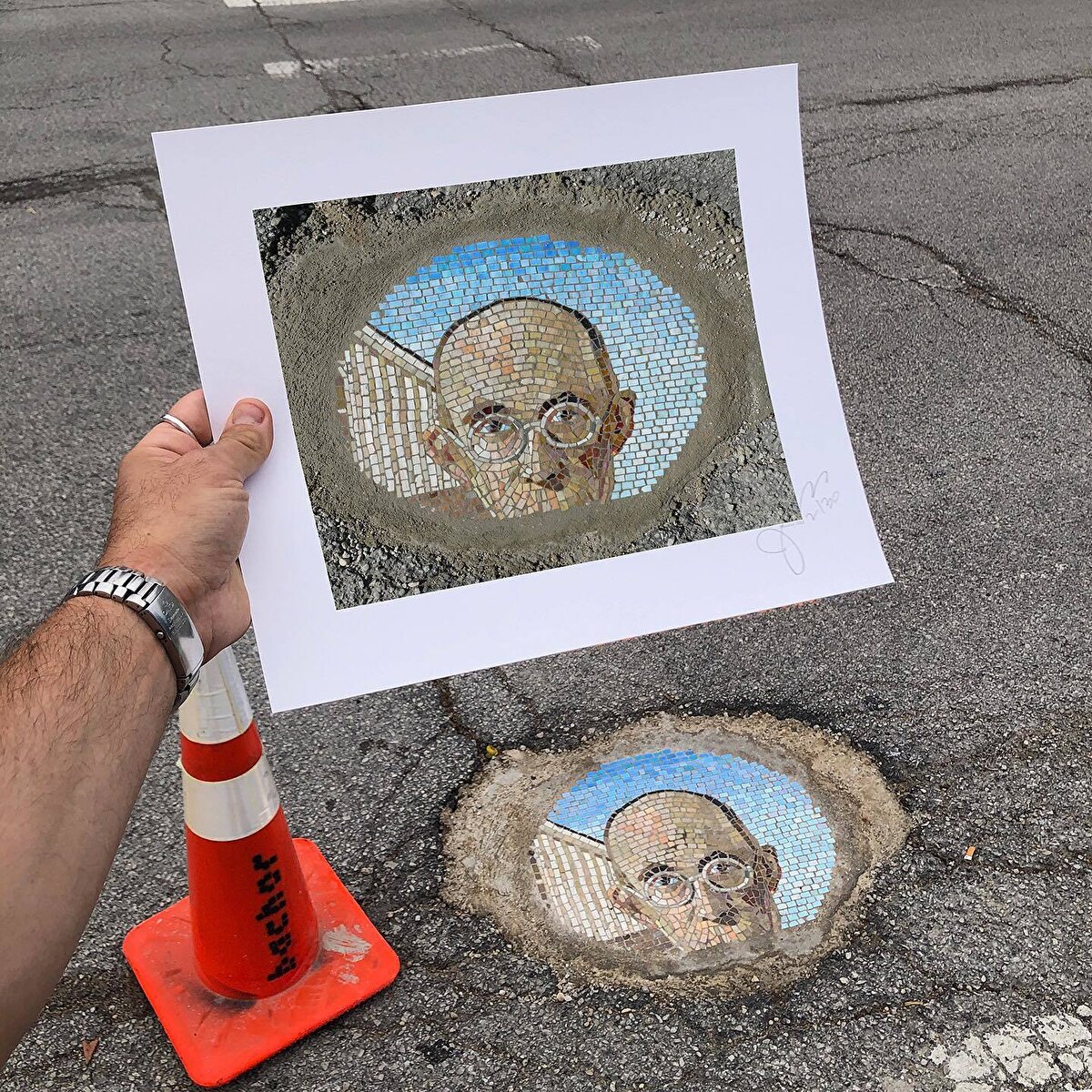 1964 doğumlu bir sokak ve mozaik sanatçısı olan Jim Bachor, ilk olarak New York sokaklarını böcek ve fare mozaikleri ile süslemesiyle tanınmış ve kendisini dünyaya duyurmuştu. Son zamanlarda ise Şikago sokaklarında bulunan çukurları ünlü tabloların mozaikleri ile doldurduğu serisiyle konuşuluyor. “Master Pieces" isimli bu serisi için her şeyin yan yana gelmekle ilgili olduğunu söyleyen Bachor, çukurları bir kusur olarak görmenin ötesinde onları doldurarak üzerlerini mozaik sanatıyla örtüyor. Böylece kusurlu olduğu düşünülen çukurlar ile hayranlık uyandıran sanat eserleri bir araya geliyor.