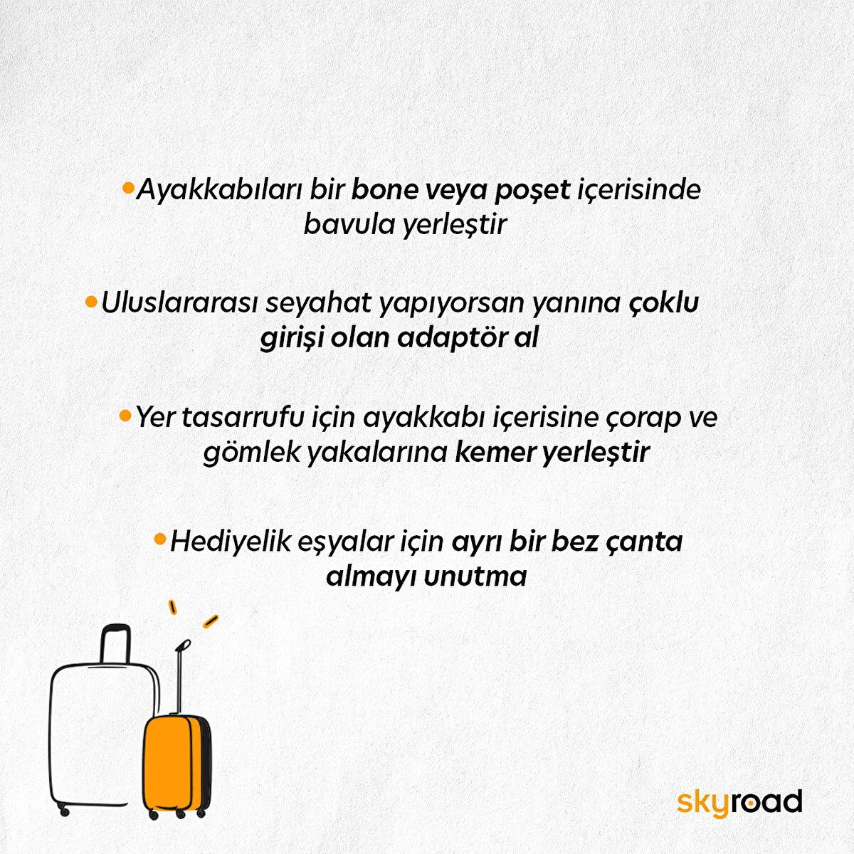 Seyahat etmeyi sevenler için bavul hazırlamayı daha keyifli ve kolay hale getirebilecek kendi ipuçlarımızı senin için derledik! 🎉