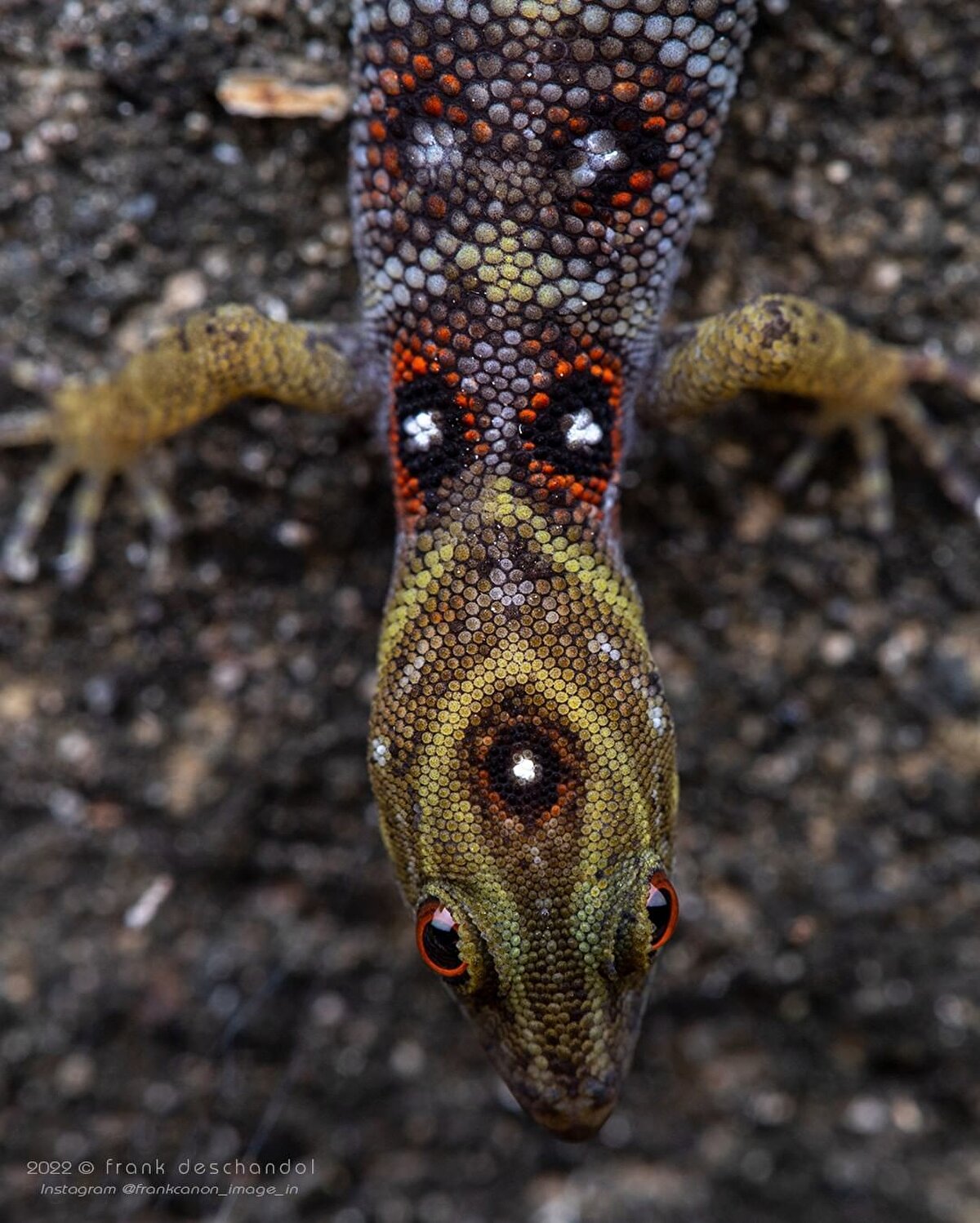 Fransız fotoğrafçı Frank Deschandol, çok küçük nesneleri ya da canlı organizmaları yakın çekim tekniğiyle görüntüleyen makro fotoğrafçılığı benimsiyor ve objektifini genelde nadir görülen böcekler, eklem bacaklılar ve sürüngenlere çeviriyor. Bunu yaparken herhangi bir filtre kullanmadan, fotoğrafladığı nesnelerin özünü korumayı önceliyor. Hayata ve çevremize duyduğumuz farkındalığı da bu görüntülerle arttırmayı hedefleyen @frankcanon_image_in, fotoğrafın doğayı koruma konusundaki gücüne inanıyor. Fotoğrafçımız için esas olan ise fotoğrafçılık etiğine uygun, hayvanları ve yaşam alanlarını istismar etmeden onlardan kesitler sunmak. Deschandol'ın objektifinden ekranlarımıza yansıyan pullu suratlar, saydam kanatlar, metalik renkli böcekler, tüy yumağı güveler ve mozaik desenli kertenkeleler erişebileceğimiz en gerçek halleriyle bize ayağımızın altındaki dünyanın harikalarını hatırlatıyor.