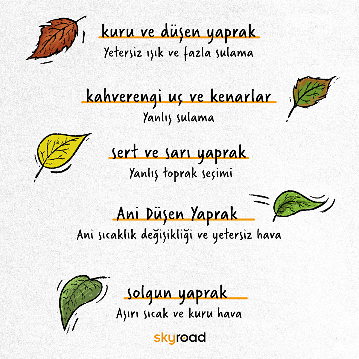 Bitkiler ihtiyaçlarını yapraklarıyla anlatıyor desek bizce abartmış olmayız. Her bitkinin yaprakları ve ihtiyaçları farklı oluyor. Bulunduğu ortam, nem, ışık, su ve toprak gibi faktörler bitkilerin sağlıklı gelişimlerini etkiliyor. Farkında olmadan bitkilerin bakımlarında yaptığımız eksik ya da fazla uygulamaları yapraklarından anlamak aslında mümkün. Yaprakları düşen, sararan veya solan bitkileriniz varsa neleri eksik veya fazla yaptığınıza bu rehberden bakabilirsiniz.
