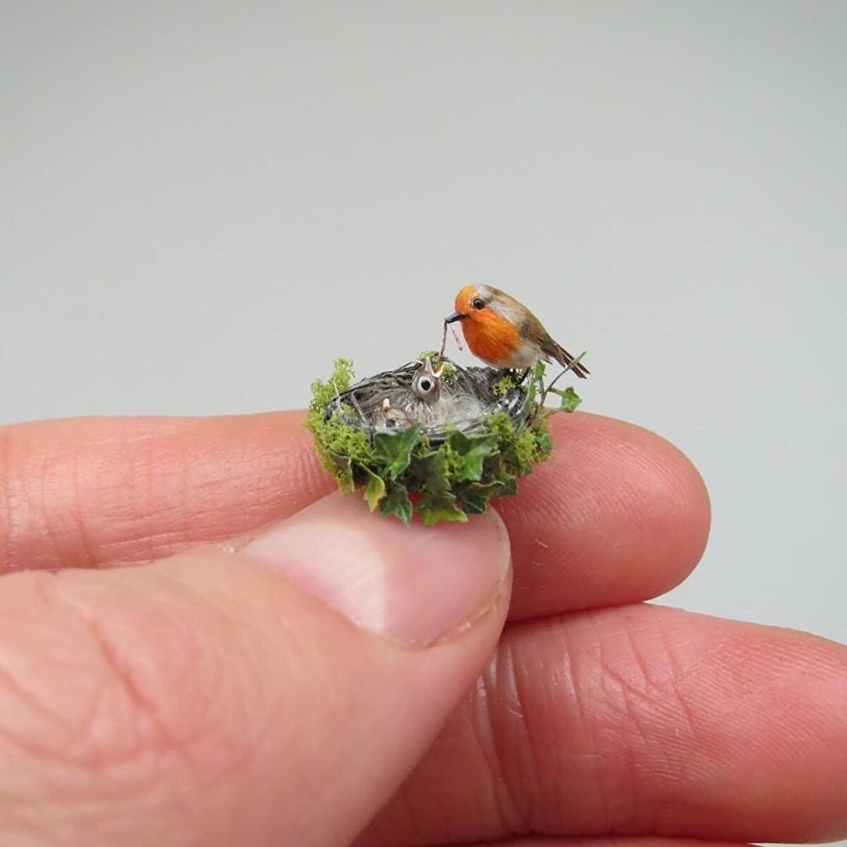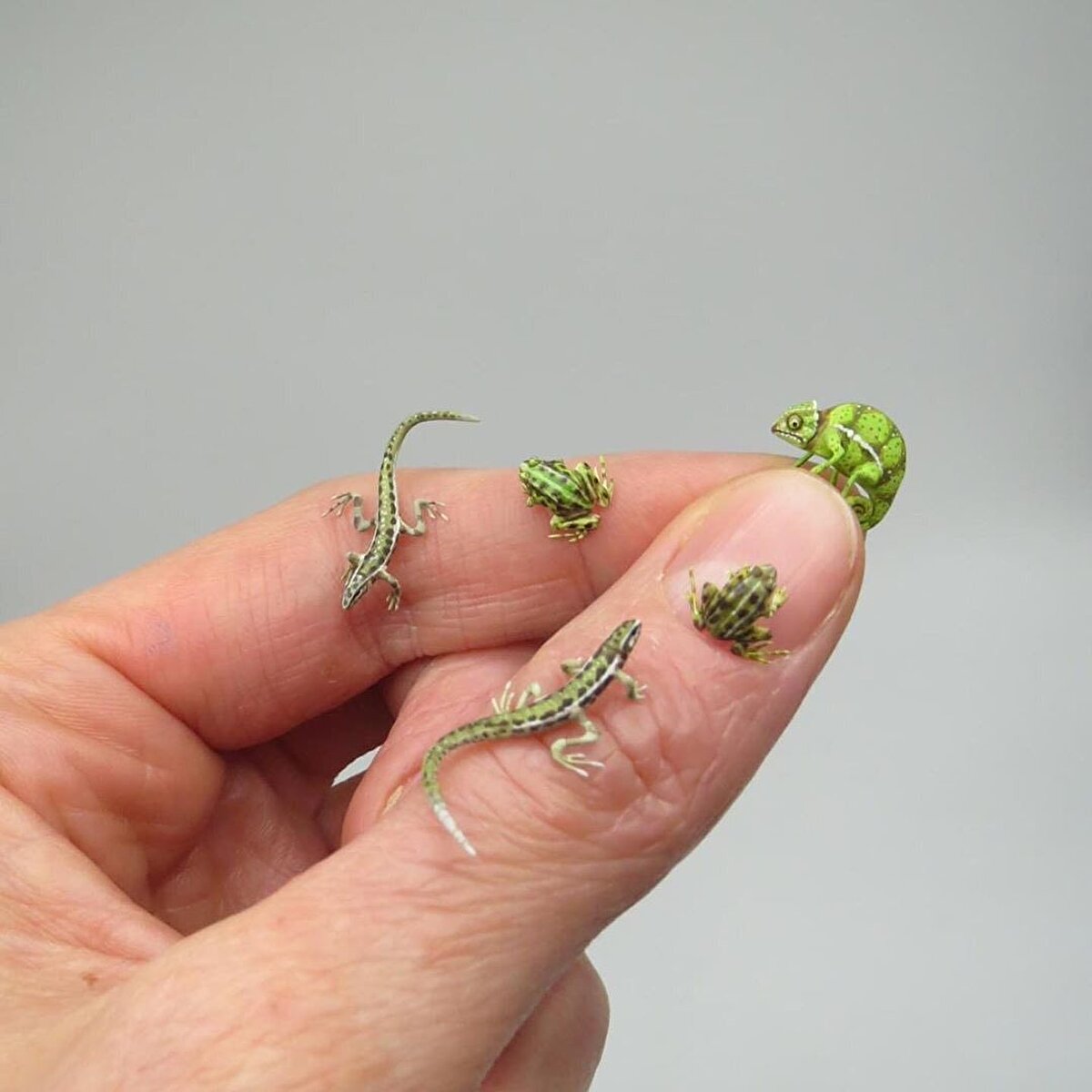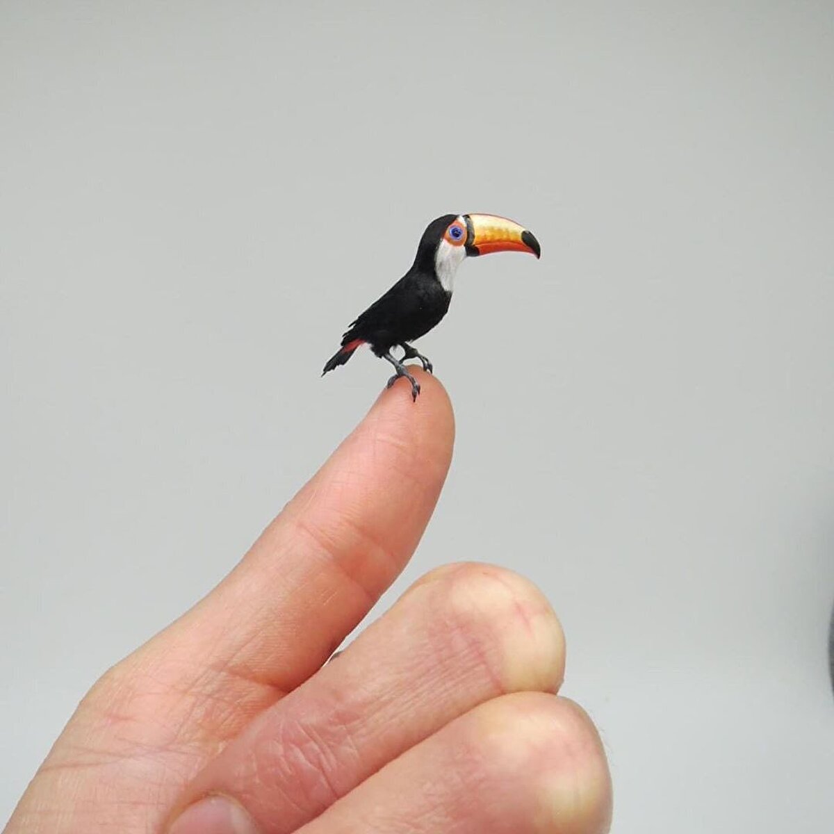 Bu gördüklerinin hayvan heykeli olduğunu ve bu heykellerin her birinin bir tırnaktan daha küçük olduğunu söylesek… Bizim favorimiz 1 ve 8, seninki hangisi? 😌⠀ ⠀ 💭 Biyolog ve minyatür sanatçısı Fanni Sandor, çocukluğundan beri ilgi duyduğu minyatür sanatına biyoloji geçmişinden esinlenerek başlamış. 1:12 ölçekli minyatür üretim sürecine türlerin fotoğraflarını toplamakla başladığını söyleyen sanatçı, hayvan figürleri için polimer kil, tel ve iğne uçlu aletlerden yaranlanıyor. Pişirme işleminin ardından boyuyor, kürk ve tüy detaylarını ekliyor. Biz her bir esere ayrı ayrı hayranlıkla baktık, şaştık kaldık.⠀