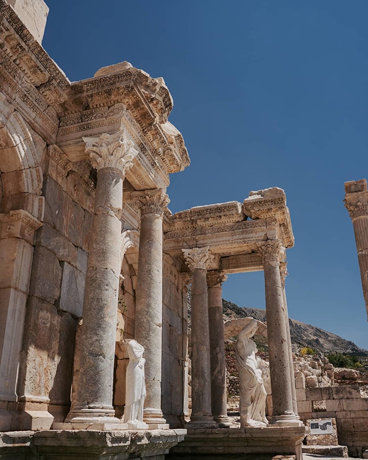📌 Burdur'un Ağlasun ilçesine 7 kilometrelik mesafede yer alan Sagalassos Antik Kenti, Roma İmparatorluğu Dönemi'nin en önemli şehirlerinden biriydi. İmparator Hadrian döneminde (M.S. 2.yy) en refah zamanlarını yaşamış şehre girişte; konutlar, aşağıda; hamam, kireç ve metal fırınları, odeon ve çeşme, daha yukarı kesimlerde ise tiyatro, Neon kütüphanesi, Helenistik çeşme, kilise ve Cladius kapısı bulunuyor. Bütün bunların arasında en dikkat çeken yapı ise Antoninler çeşmesi. 2009 yılında UNESCO Dünya Mirası Geçici Listesi'ne alınan Sagalassos, 6. yüzyılın ortasına dek gelişmeye devam etmiş ancak 590 yılında gerçekleşen depremin ardından yerle bir olmuş. Yine de XIII. yüzyılın ortalarına kadar birkaç köy ayakta kalmaya devam etmiş ve terk edildiği günden bugüne en iyi korunagelmiş antik yerleşim alanlarından biri olmayı başarmış. Günümüze dek uzanabilmesiyle alanda yapılan çalışmalar ile gün yüzüne çıkan dönem eserleri yıllardır Burdur Müzesi'nde sergilenmekte. Her adımınızda tarihe karıştığınızı hissedeceğiniz bu kente girişler ise Müze Kart ile ücretsiz ve haftanın her günü yazları 09.00-19.00, kışları 08.30-17.30 saat aralıklarında ziyarete açık.