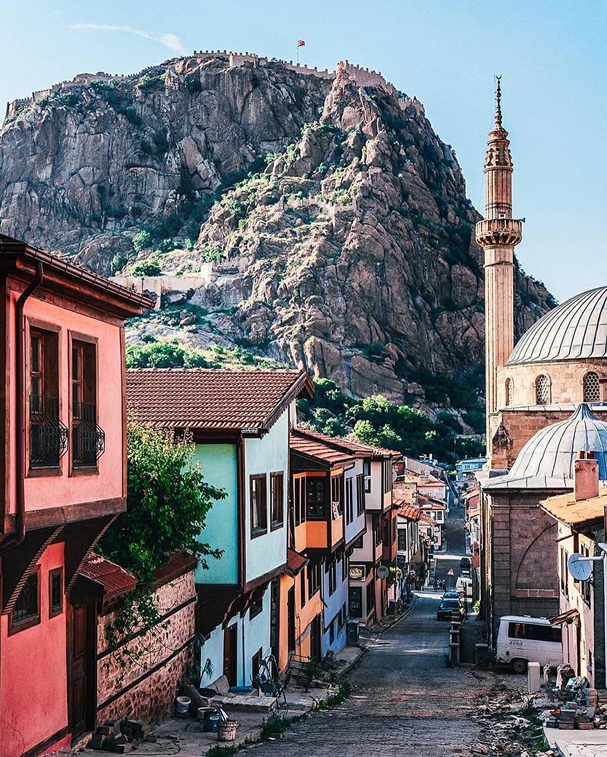 Karahisar ismi, şehrin ortasında yükselen koyu renkli volkanik kayaların renginden ve üstünde bulunan hisardan geliyor. Sâhib adı ise, Anadolu Selçukluları'nın son devirlerinde yaşayan ve Moğol istilası sırasında buraya gelen Sâhib Ata Fahreddin Ali'nin unvanından gelmekte.⠀ ⠀ 📍Afyon, deyince aklınıza muhtemelen sucuk, kaymak, lokum gelir. Hak edilmiş bir ün bu. Ahmet İpek Sucukları kentte bilinen en güzel sucuklardan. Yiyecekleri saydıktan sonra şehrin bir başka meşhuruna geçelim: Mermere. Dünya çapınca mermer yataklarına sahip olan şehirdeki dükkânlardan mermerden yapılmış saksı, vazo, şekerlik vb. şeyleri temin edebilirsin. Ve tabii semt pazarları, bütün bunlara ek olarak oradan da şehrin diğer meşhurlarını; ekşimen, haşhaş otu, ebe gümeci, ısırgan gibi pek çok ot çeşidini alabilirsin.⠀ ⠀ 📸: @hasanilkay