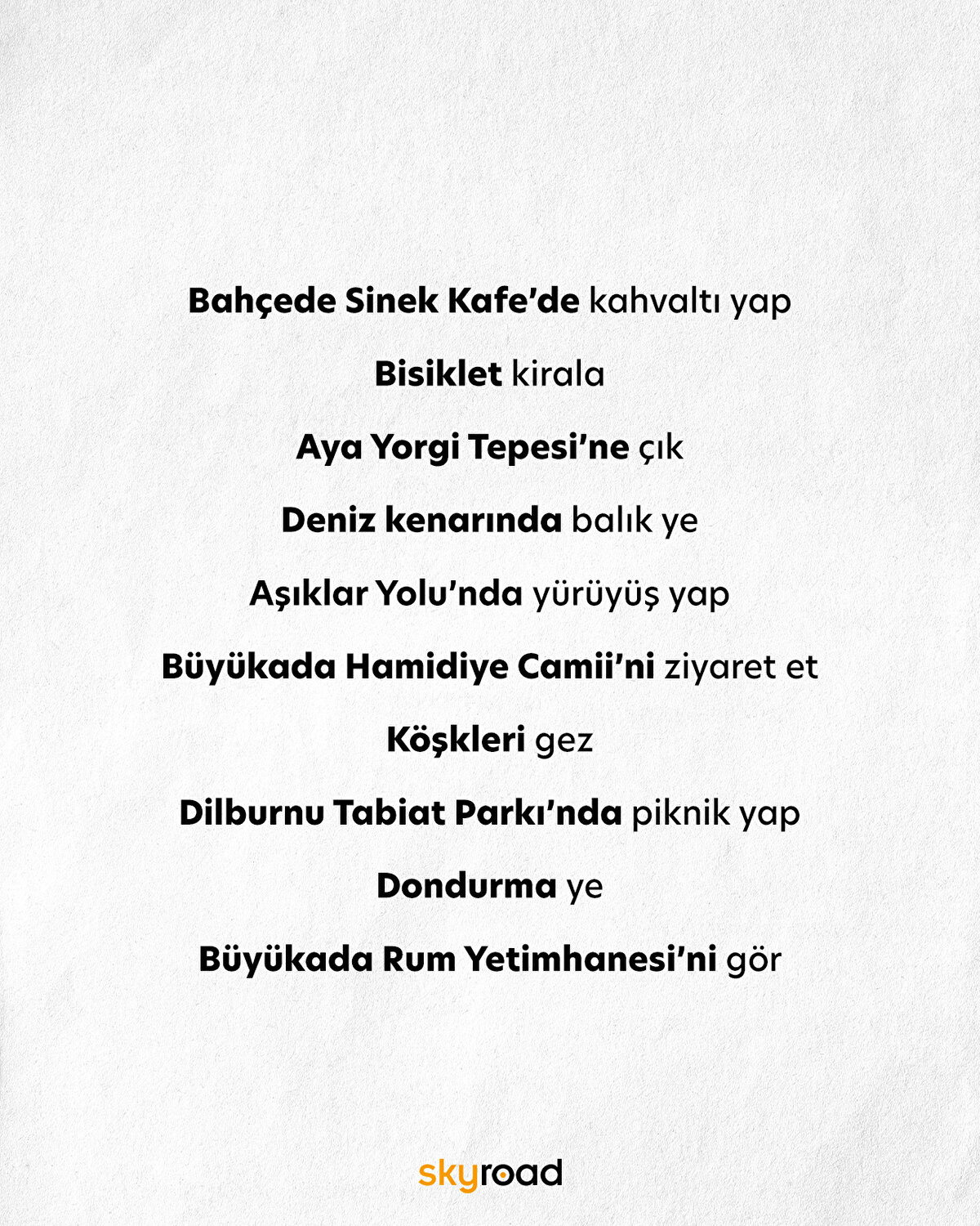 Büyükada'da mutlaka yapmanız gereken 10 şey ile geldik! İstanbul'un kalabalığından uzaklaşmak için sabahın erken saatlerinde vapura atlayıp Büyükada'ya gitmek bizim en favori aktivitelerimizden biri. Muhteşem mimarisiyle Aya Yorgi Kilisesi, renkli ahşap köşkleri ve birbirinden güzel deniz manzaralı mekanlarıyla Büyükada'nın her köşesi keşfedilmeyi bekliyor. İster adanın sakin sokaklarında yürüyüş yapın ister bisiklet kiralayarak adayı keşfedin.