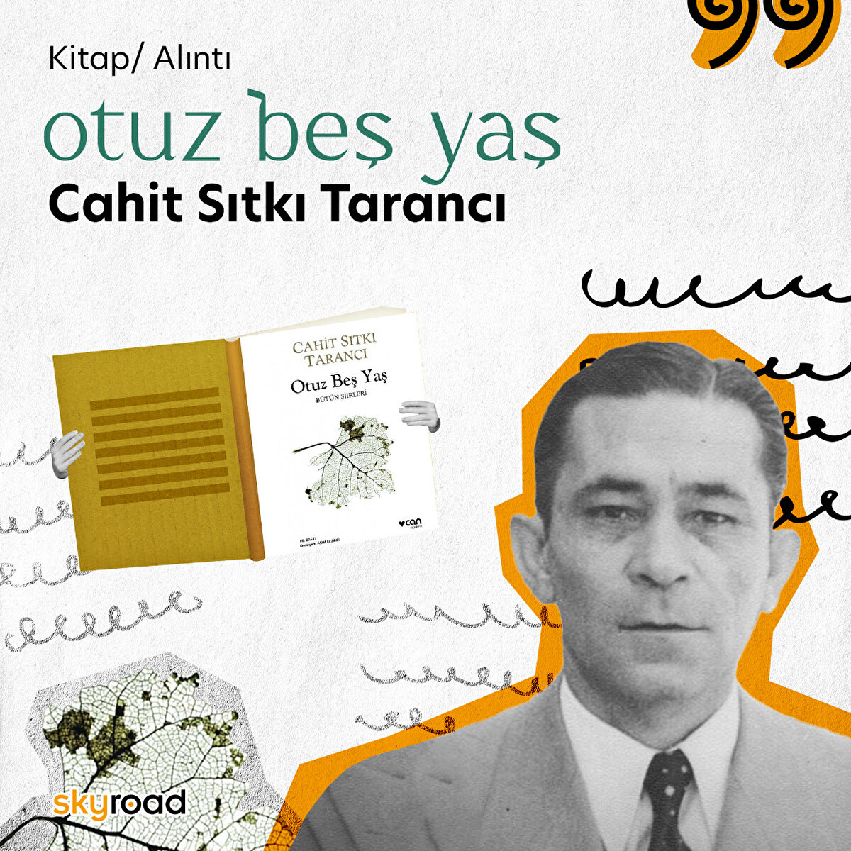 Cumhuriyet döneminin en önemli şairlerinden biri olan Tarancı, Diyarbakır'da varlıklı bir ailenin çocuğu olarak dünyaya geldi. Bunun bir getirisi olarak da iyi eğitimler aldı. Güçlü eğitim altyapısı ile şairane ruhunu harmanlamasıyla da henüz genç yaştan itibaren adını edebiyat camiasında duyurmayı başardı. Çoğumuzun “Otuz Beş Yaş” şairi olarak tanıdığı Cahit Sıtkı'nın aynı isimli kitabından derlediğimiz şu birkaç söz ile onun hayata bakışına ufak bir pencere aralıyoruz ve yaşam sevinci ile karamsarlığı bir arada yansıttığı şiirleriyle hayatın her türlü getirisine aslında nasıl da ruhumuzu besleyen birer sanat ışığı olarak bakabileceğimizi öğreniyoruz. Asıl mefkuresinin şiire ulaşmak olduğunu bildiğimiz birinden de daha güzel ne öğrenebilirdik ki zaten…