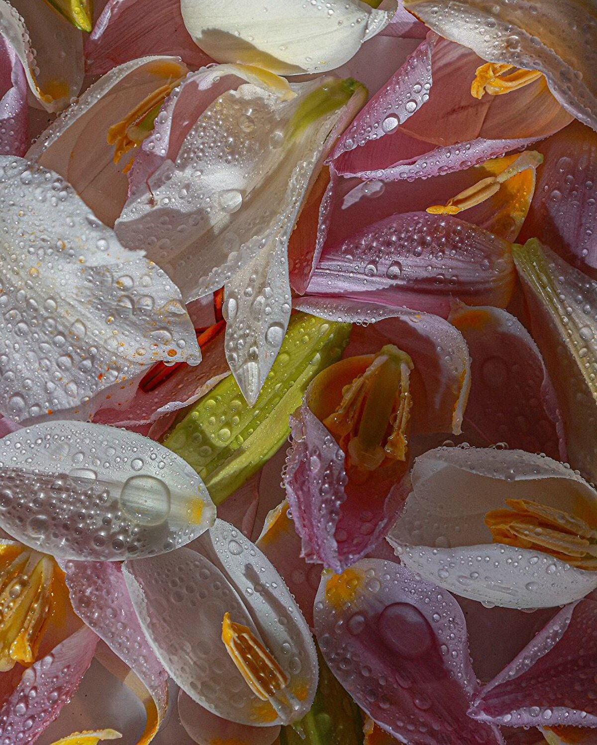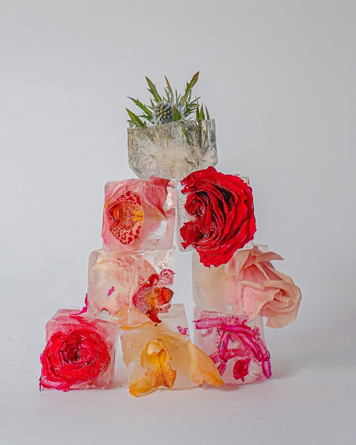 Sanatçı canlı çiçekleri bazen renklerine, farklı yaprak ve sap boyutlarına göre sınıflandırarak bazen de bir buz kalıbında dondurarak farklı bir bakış açısıyla oluşturulmuş objelere dönüştürüyor. Görselleştirme yeteneğini de kullanıp eserlerini fotoğraflayan sanatçı canlı çiçeklerden oluşan rengarenk tablolar yapıyor.