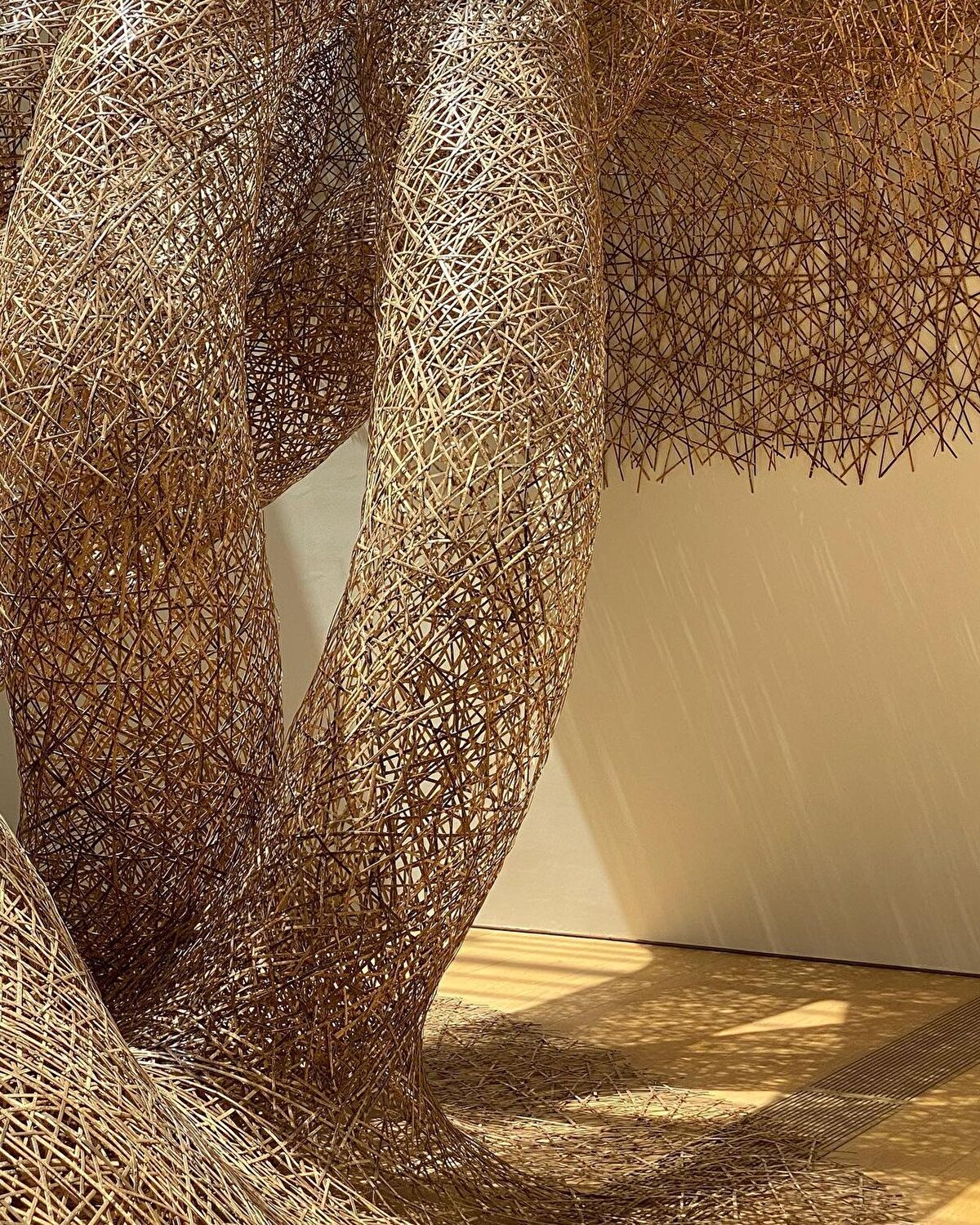Birlikte Eskişehir'e gidelim veee Chikuunsai IV'ün OMM'daki enstalasyonuna bi' bakalım 🧡⠀ ⠀ Japonya'nın en tanınmış bambu ustası ailelerinden birinden gelen Tanabe Chikuunsai IV, bambu sanatını çocukluğundan itibaren aynı zamanda ustası olan babasından öğrendi. Tokyo Güzel Sanatlar Üniversitesi'nin heykel bölümünden 1999'da mezun olduktan sonra çalışmalarını Osaka'da devam ettirdi.⠀ ⠀ Chikuunsai IV, OMM için Japonya'nın yalnızca Kochi bölgesindeki bir dağda yetişen “kaplan bambu" türünü kullandığı yerleştirmesini anlatırken, “Doğadaki dört elementi tema olarak aldım," diyor. “Su, ateş, hava ve toprak. Beşinci element ise boşluk, ona kimimiz evren, kimimiz uzay diyoruz. Eskişehir'e seyahatlerimde ve burada geçirdiğimiz iki haftada karşılaştığım insanlar, onlarla etkileşimim, beşinci elementin bir parçası oldu."⠀ ⠀ Tanabe Chikuunsai IV'ün eserleri, aralarında British Museum, Victoria and Albert Museum ve Metropolitan Museum of Art'ın da olduğu 21 müzenin kalıcı koleksiyonunda yer alıyor.⠀ ⠀ 📸: @aysegularslano⠀