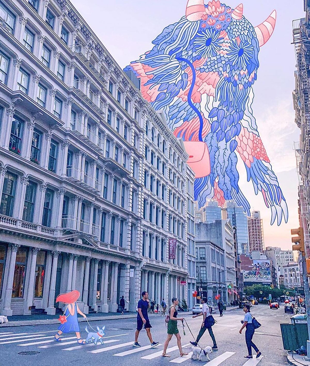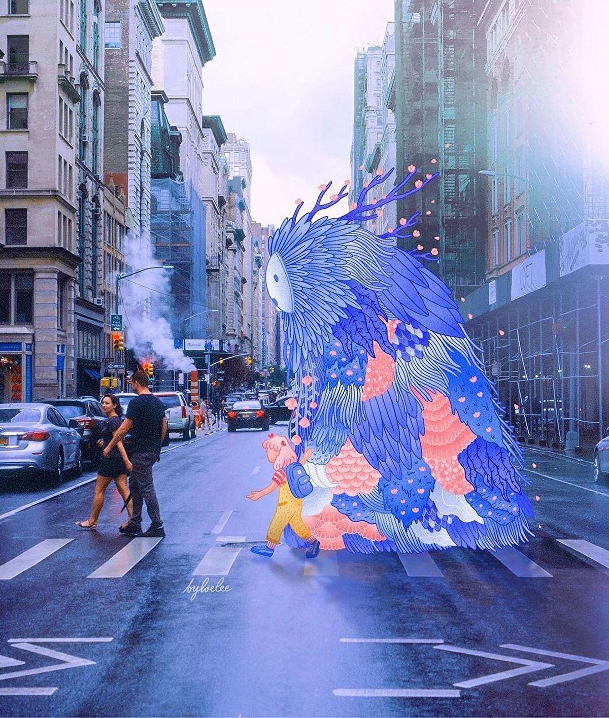 ⠀📌 Çizer Loe Lee sayesinde New York City sokaklarında pastel kürk ve tüylerle kaplı, dost canlısı canavarlar dolaşıyor. Şehrin fotoğrafını kaplayan neşeli karakterler, sanatçının 'Creatures of Hope' serisinin bir parçası. Proje, şehrin gücü ve azminden doğmuş. Salgın sırasında onca kayıp ve kafa karışıklığına rağmen insanların sarsılmaz bir dirençle çabaladığını gören sanatçı, bu projeyi hayata geçirmiş. Loe Lee, sokaklara neşe getirmeyi umuyor.⠀